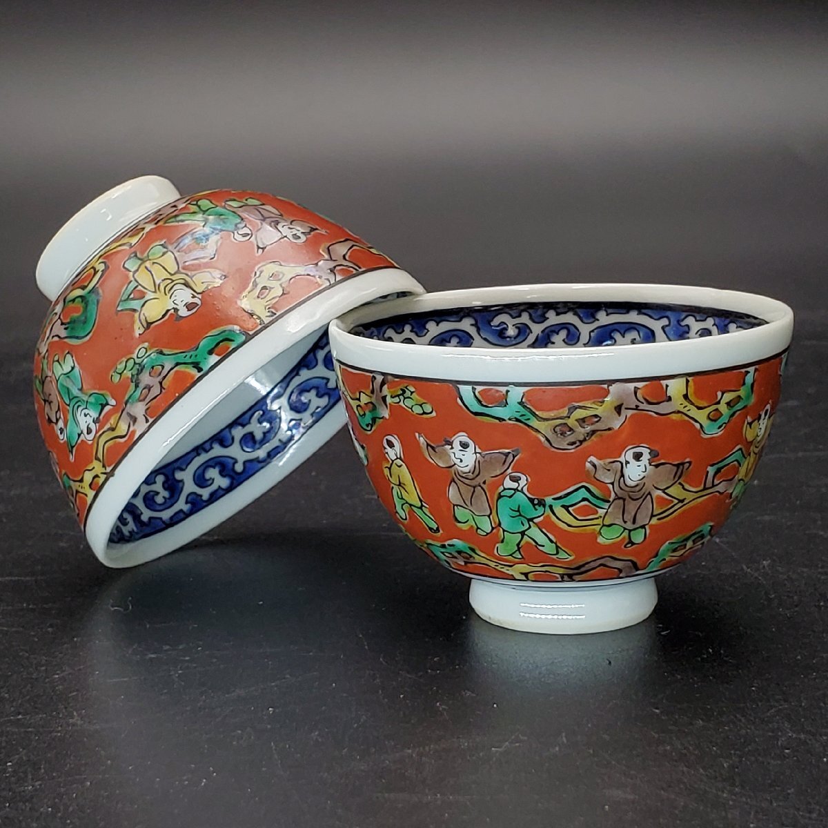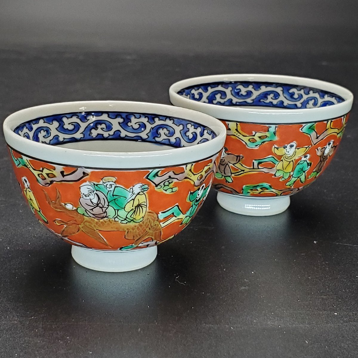 【宝蔵】九谷焼 中村梅山 木米写 酒盃 2客 口径約6㎝ 酒器