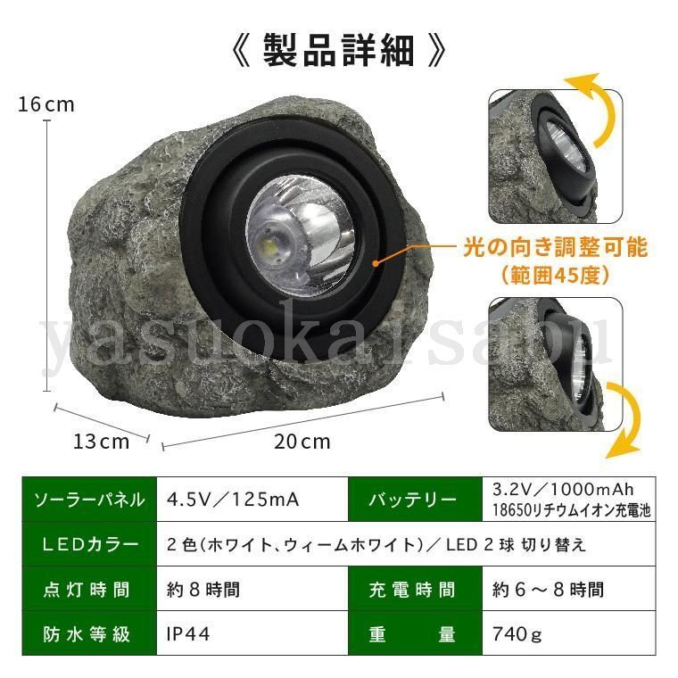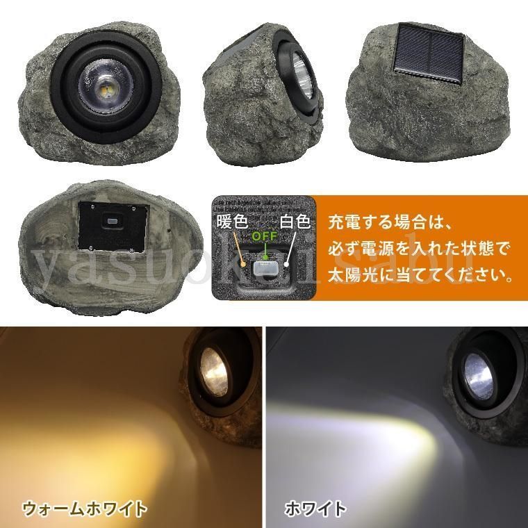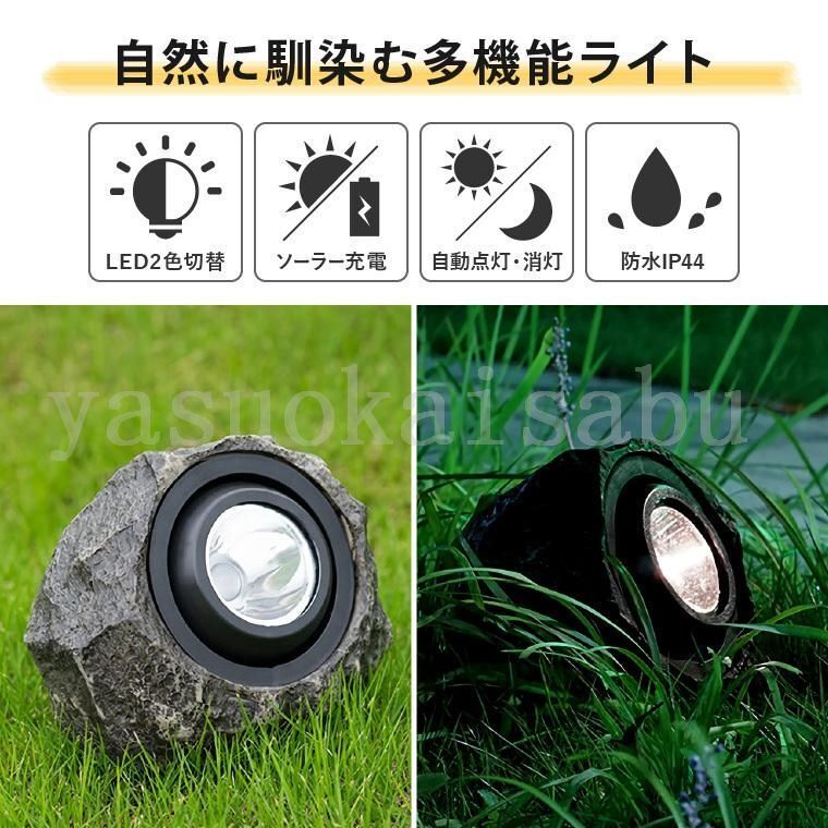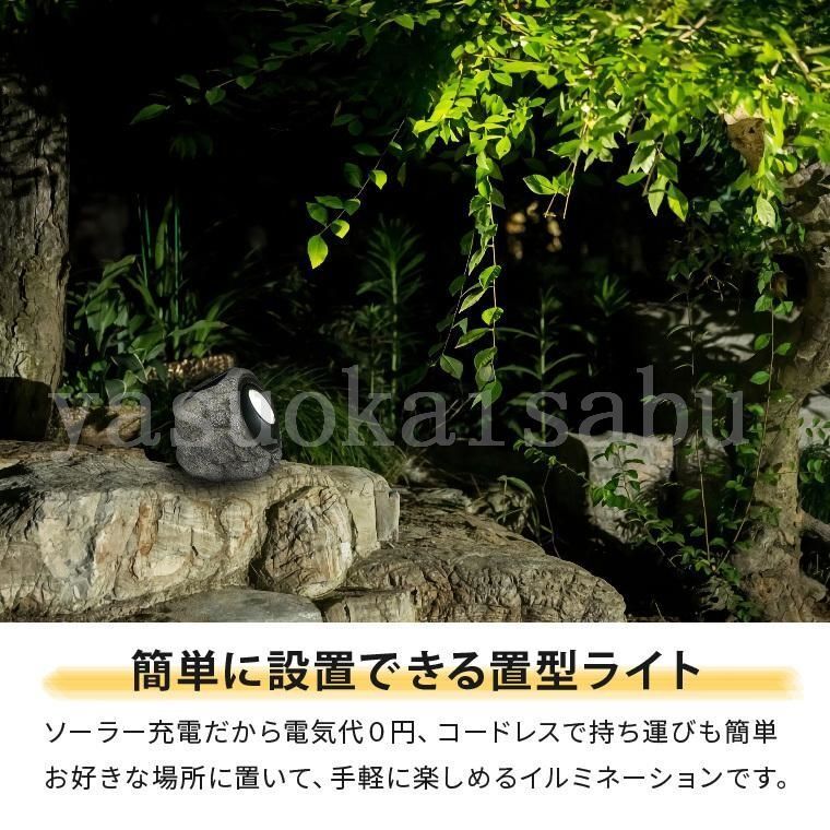 ガーデンライト ソーラー スポットライト 屋外 人工石 ストーンライト 充電式 置き型 明るい 防水 自動点灯 玄関 庭 石 岩 LED 照明 太陽光