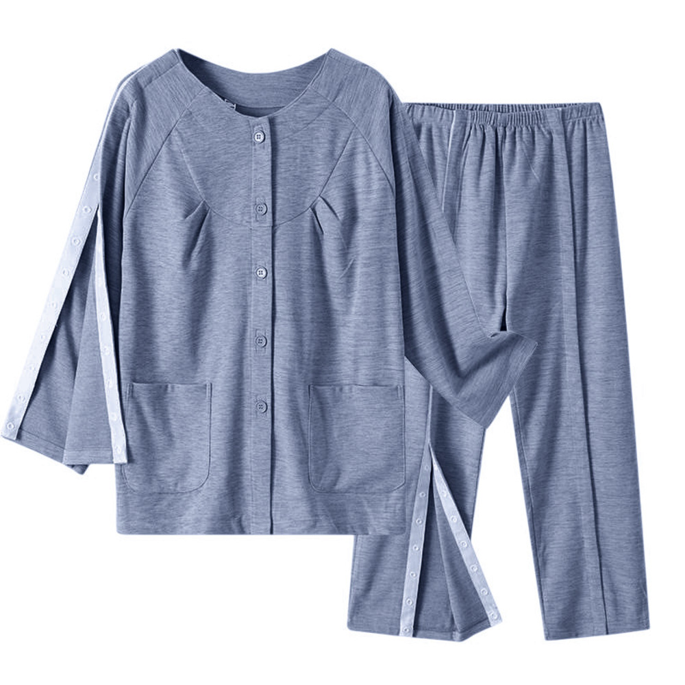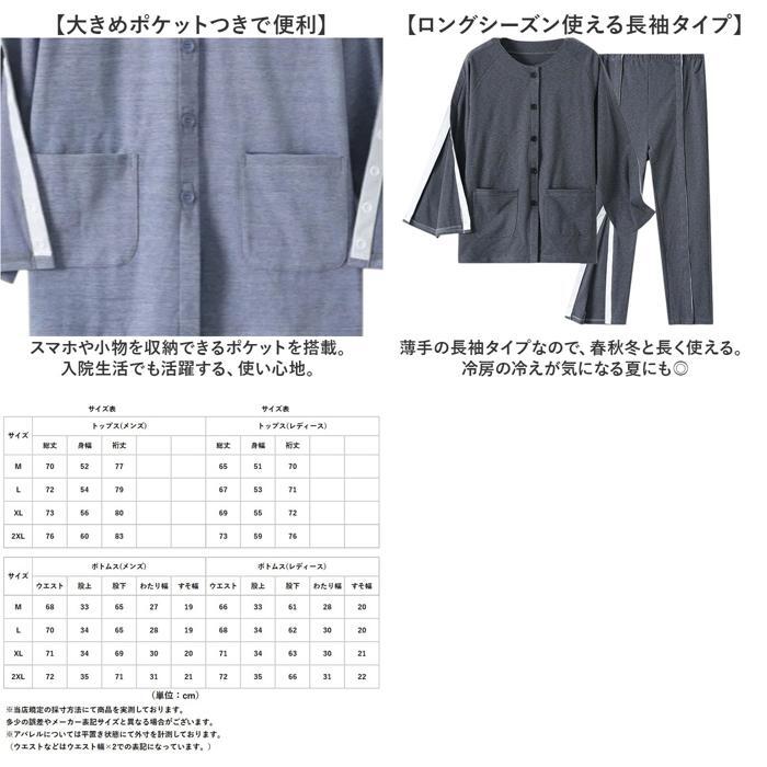 | 商品説明 | ・・【介護や入院生活をサポート】 ・寝姿勢のまま、ケアができる、優れモノ!「介護パジャマ 上下セット」が登場。 ・ ・【着る人、着せる人に親切なパジャマ】 ・普段のパジャマと同じに見えて、実は機能的◎ケアしたい部分だけオープンにできるのが魅力! ・ ・【ボタンのつけ外しが不要】 ・フロントのボタンも面ファスナー仕様。見た目は普通のパジャマのまま、お着換えもしやすい♪ ・ ・【より快適な使用感】 ・開け閉めの少ないトップスの肩から袖とズボンの両サイドはスナップボタンを配置。肌にも優しい仕様。 ・ ・ ・【優しい着心地でリラックス】 ・コットンを使用した生地は、柔らかく長時間着用してもストレスフリー。汗をかいても快適に。 ・ ・【大きめポケットつきで便利】 ・スマホや小物を収納できるポケットを搭載。入院生活でも活躍する、使い心地。 ・ ・【ロングシーズン使える長袖タイプ】 ・薄手の長袖タイプなので、春秋冬と長く使える。冷房の冷えが気になる夏にも◎ |