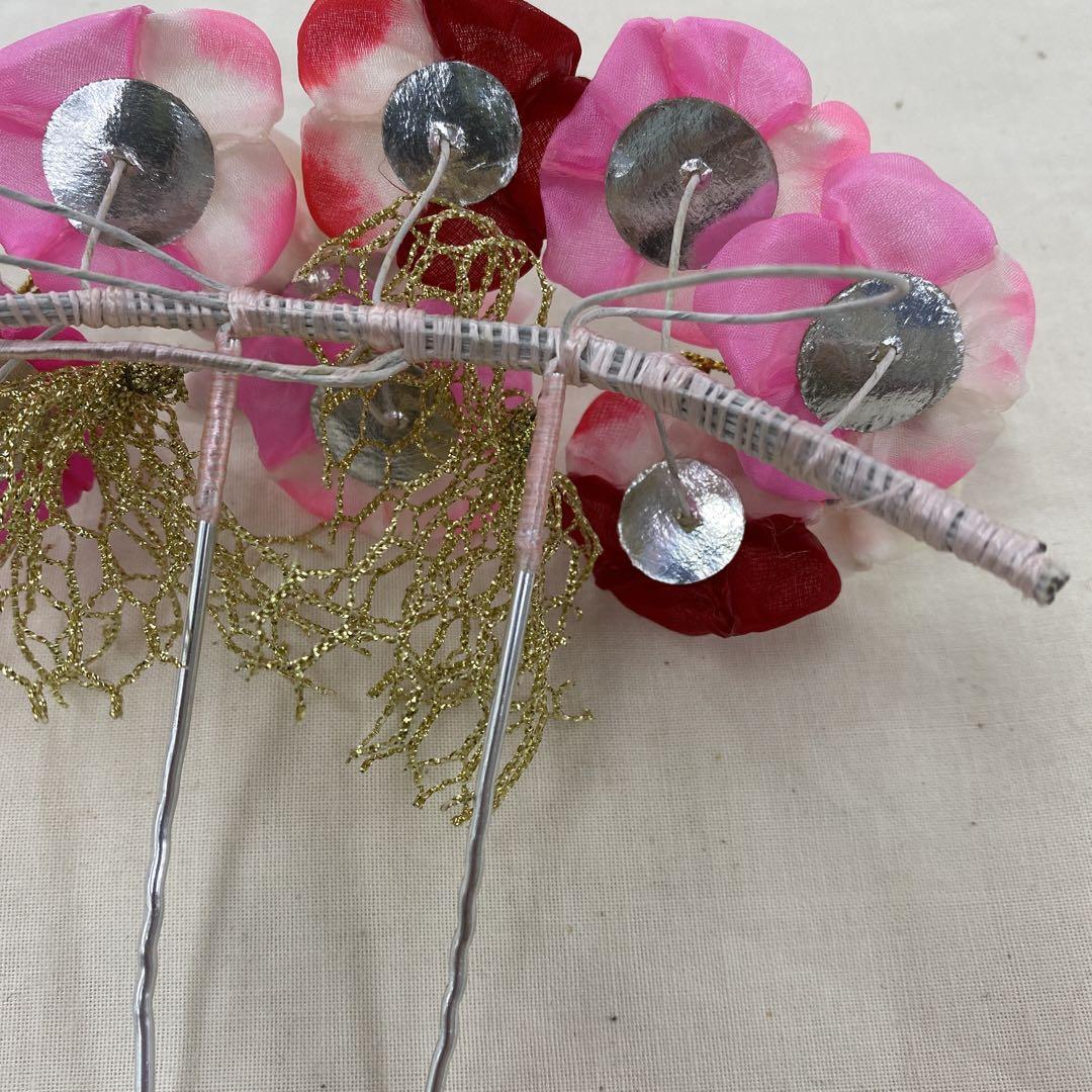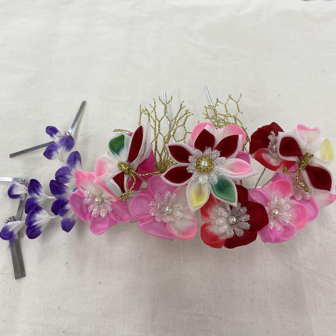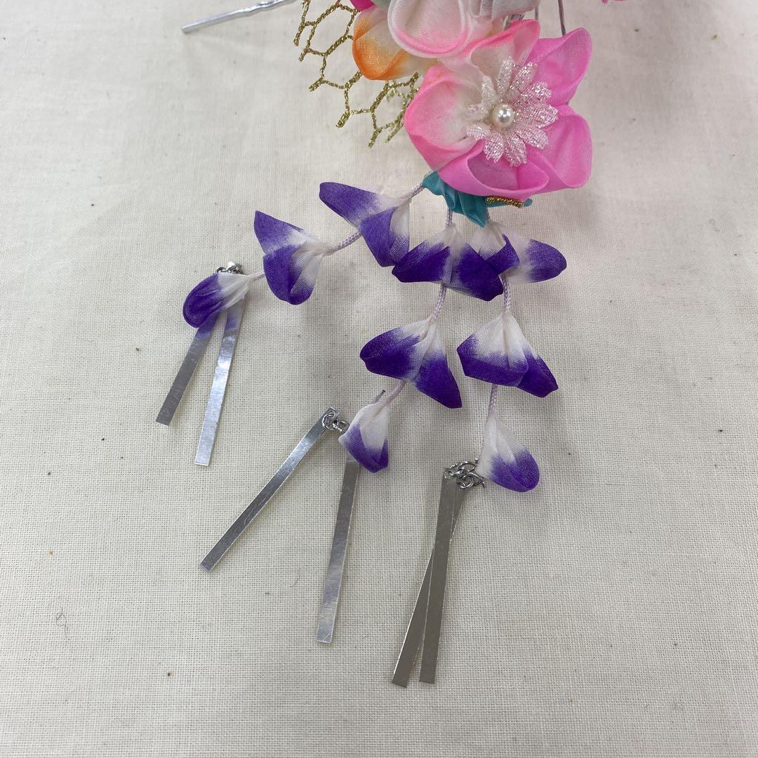華やかな花と蝶のデザインの髪飾り、七五三や特別な行事に最適です。