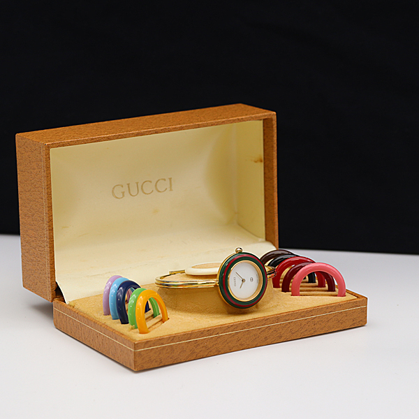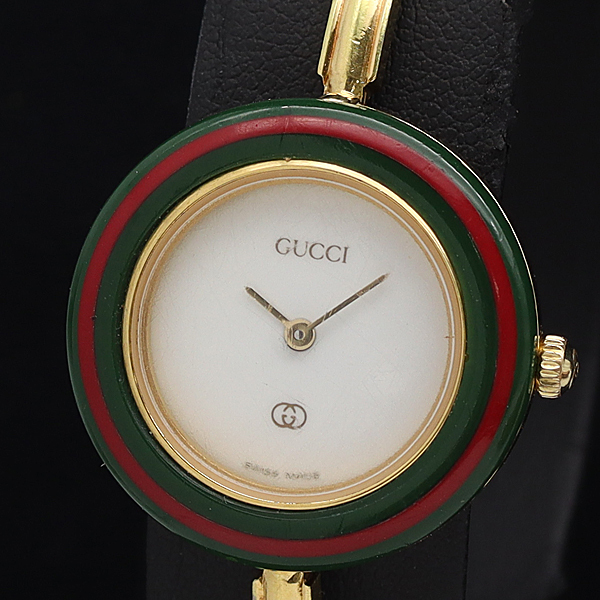 1円 箱付 稼働 グッチ チェンジベゼル 1100-L QZ ホワイト文字盤 レディース腕時計 0993300 9OKT SMZ
