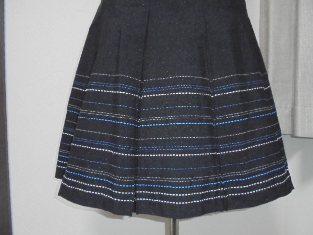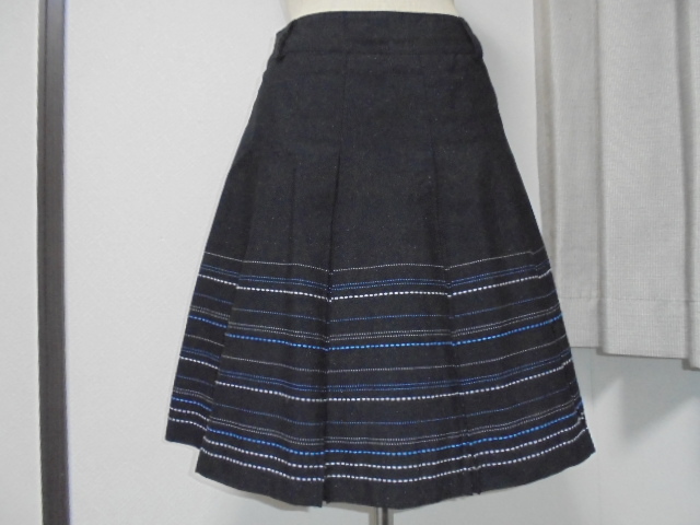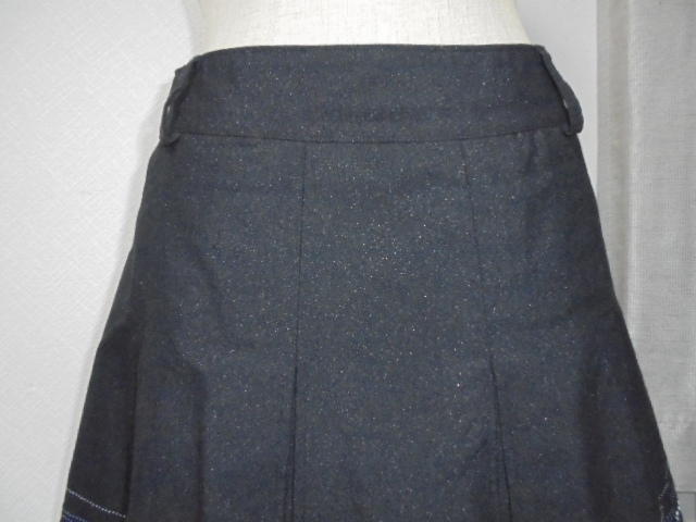 黒ラメ入裾ステッチ飾りタックプリーツSK