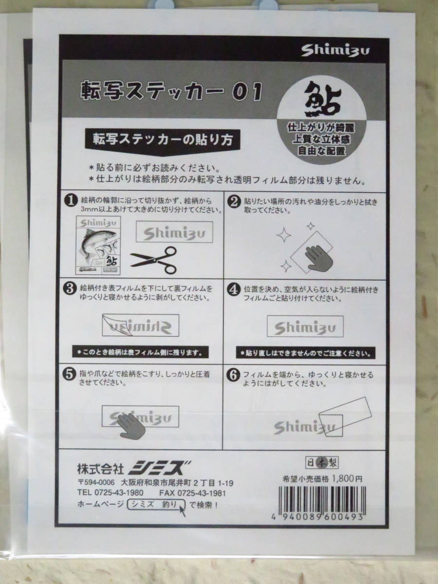 シミズ 転写ステッカー01 鮎 ステッカー SHIMIZU 転写シール鮎 新品 未使用