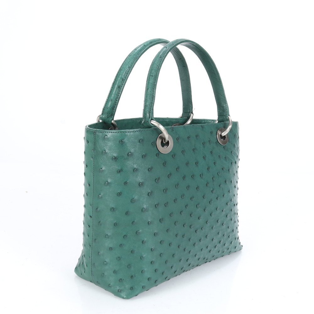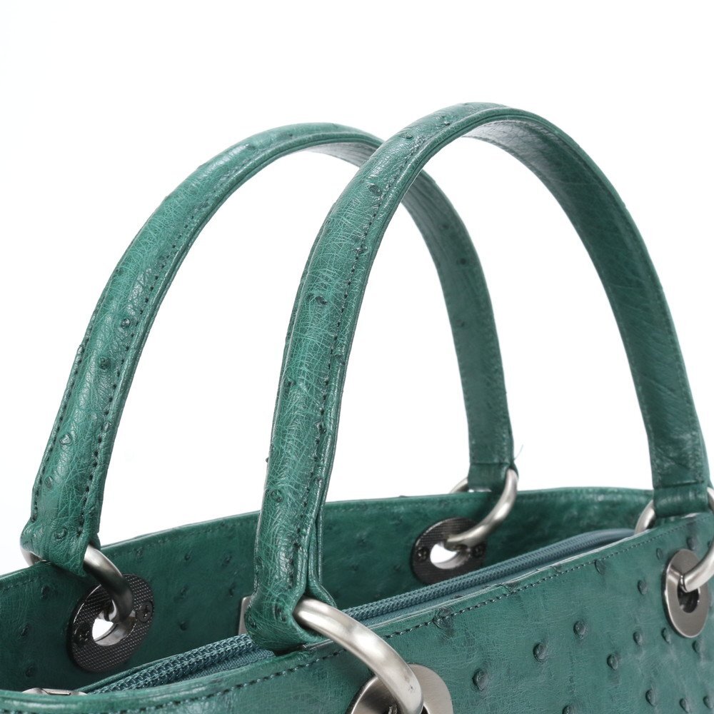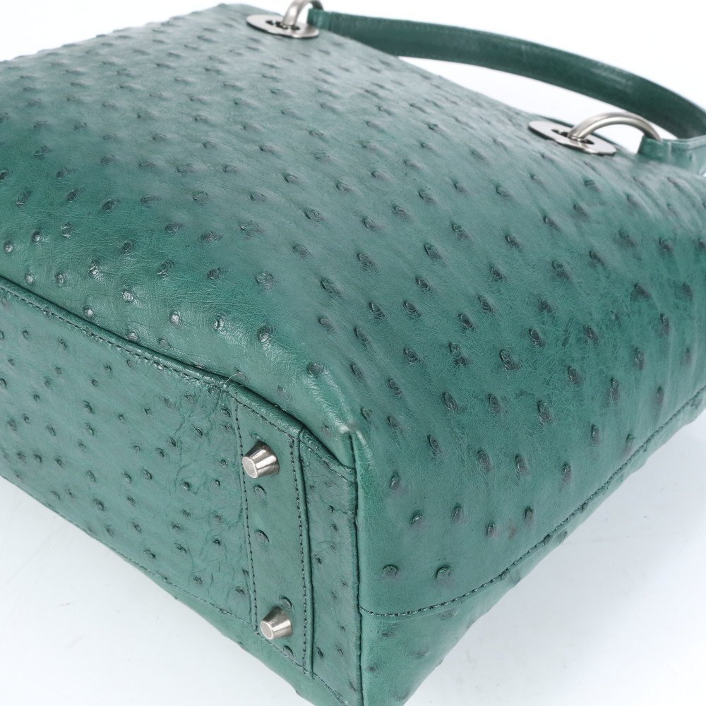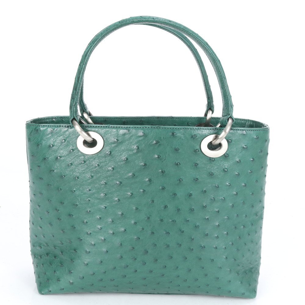 1円■極美品■ハイクラス■オーストリッチ レザー トート バッグ 肩掛け ショルダー ハンド シルバー 金具 レディース ECE CE-9-3