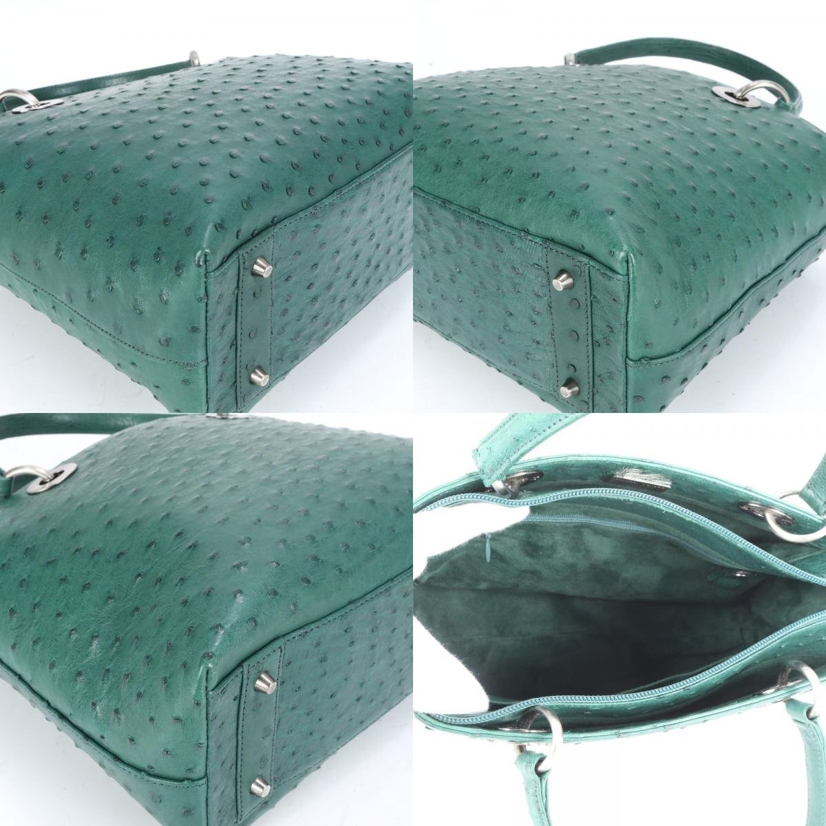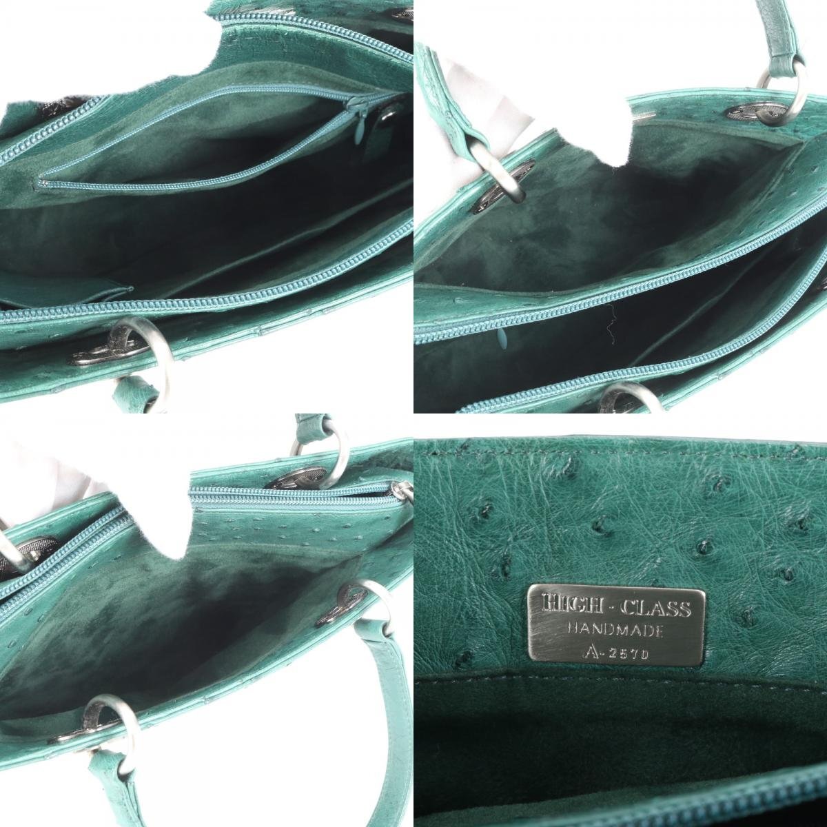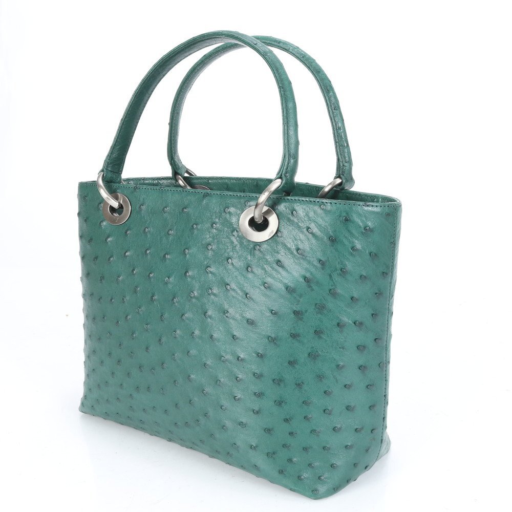 1円■極美品■ハイクラス■オーストリッチ レザー トート バッグ 肩掛け ショルダー ハンド シルバー 金具 レディース ECE CE-9-3