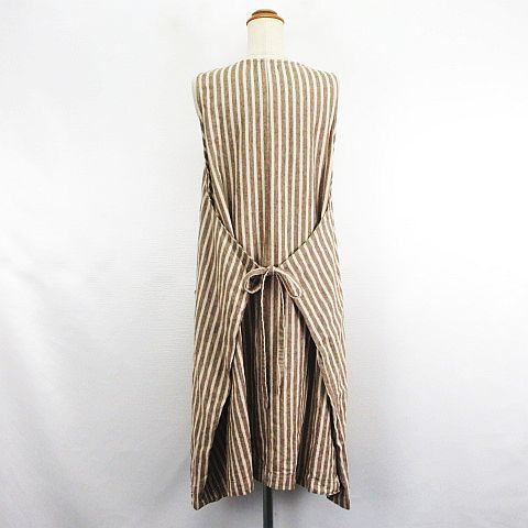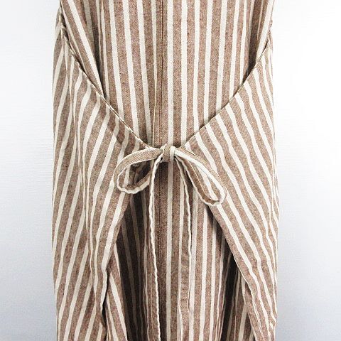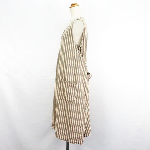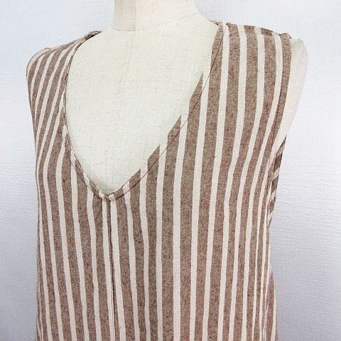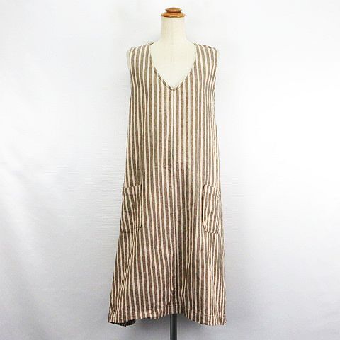 サマンサモスモス SM2 ジャンパースカート ノースリーブ Vネック ロング丈 ストライプ 麻混 M ブラウン×ベージュ ※EKM レディース