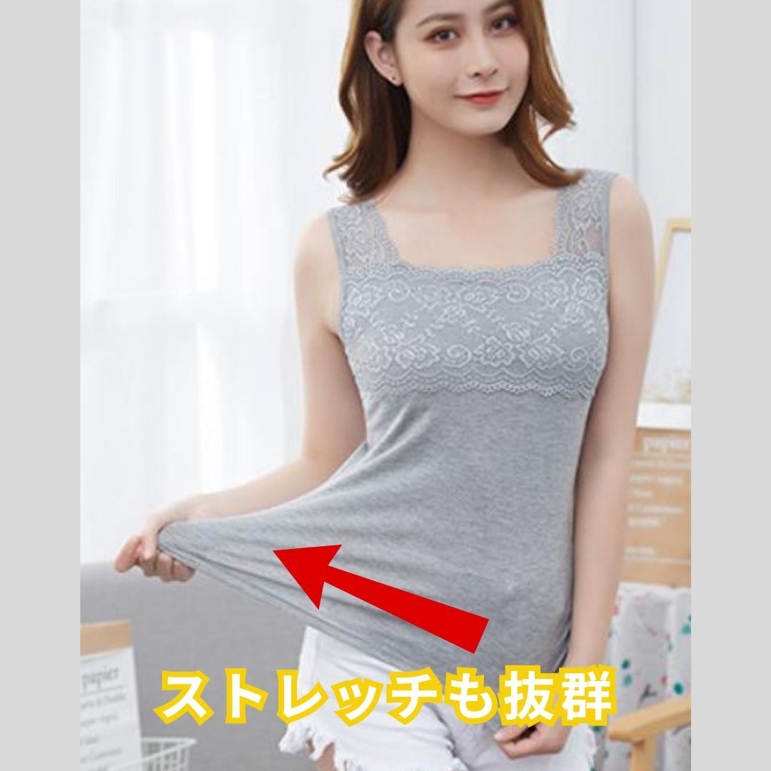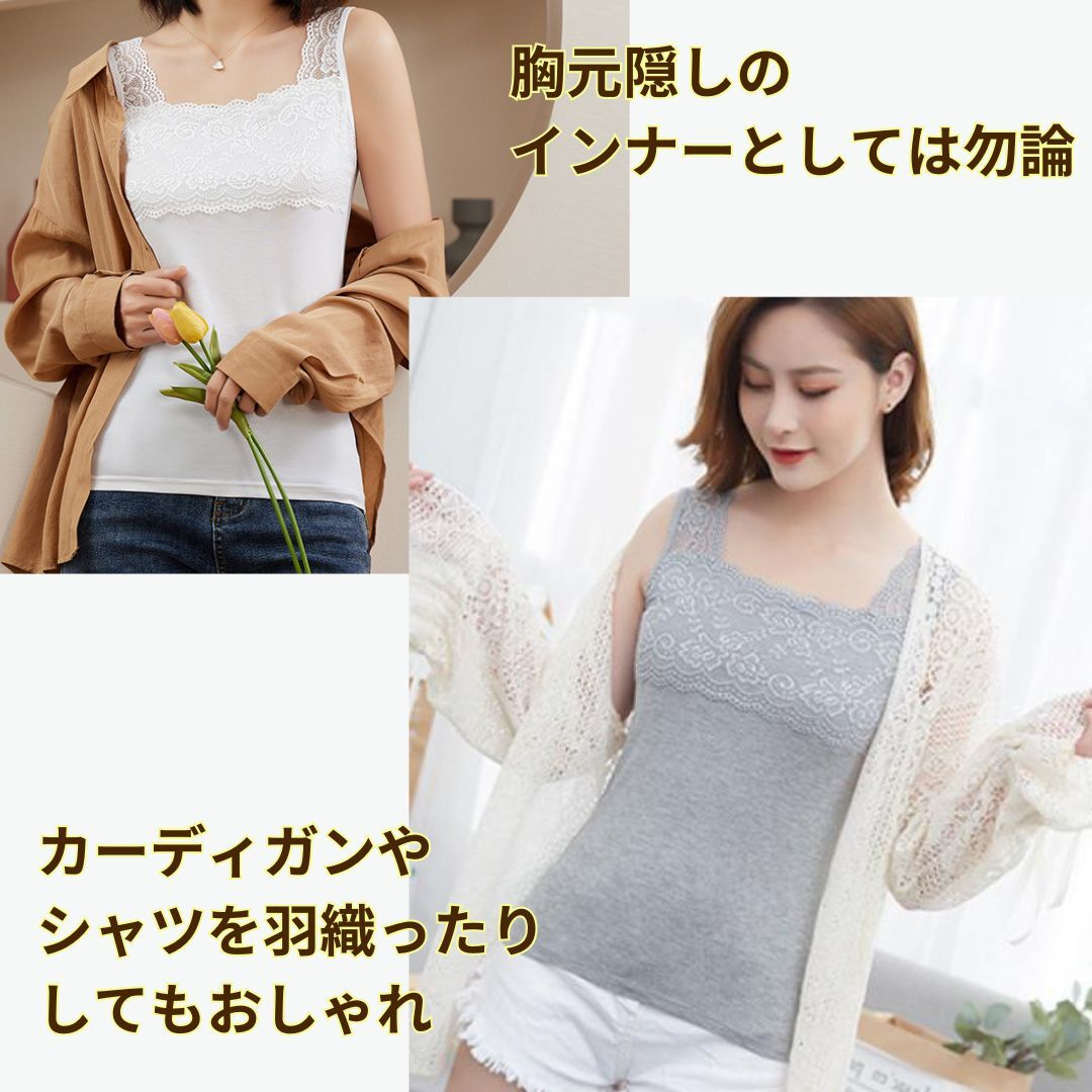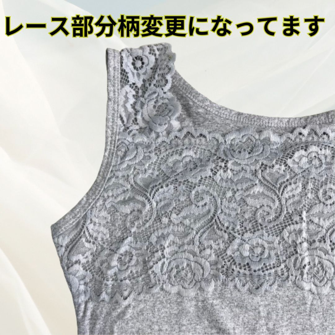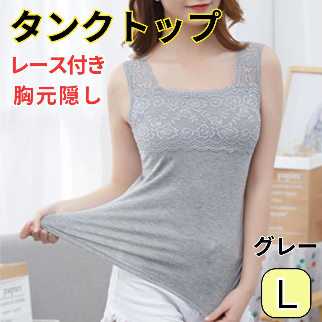 L タンクトップ キャミソール レース付き トップス 胸元隠し ブラ紐隠し インナー グレー
