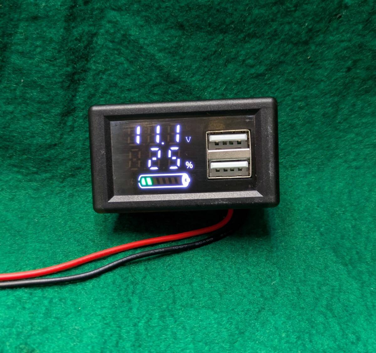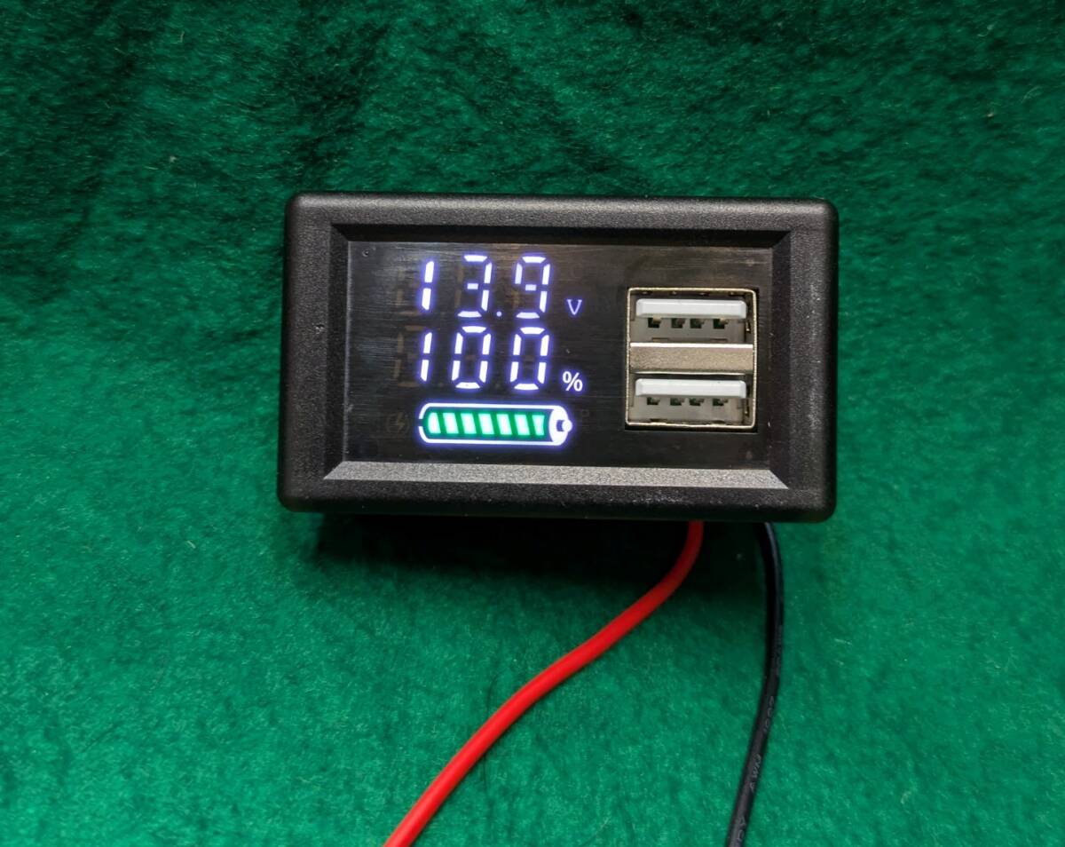USB出力端子2個付きバッテリー容量計・電圧計入力12V~30V設定送料全国一律ゆうメール180円