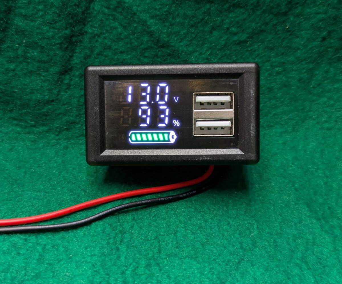 USB出力端子2個付き鉛電池・リチュウム電池 バッテリー容量計・電圧計入力12V~30V設定送料全国一律ゆうメール180円