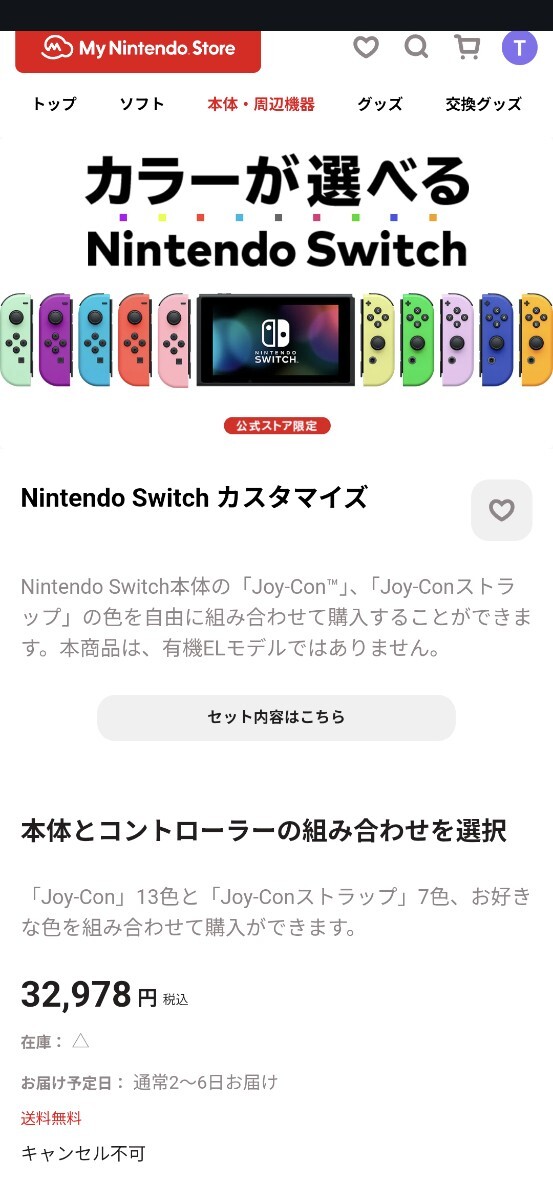 商品名 : Nintendo Switch カスタマイズ本体[マイニンテンドーストアオリジナル商品] HAD-S-KAYAA