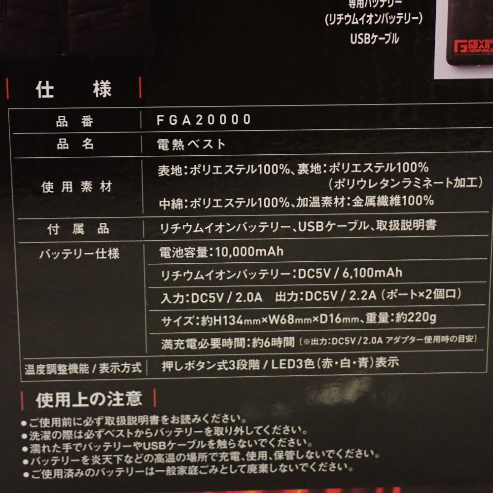 モデル | FEVERGEAR 電熱ベスト | |