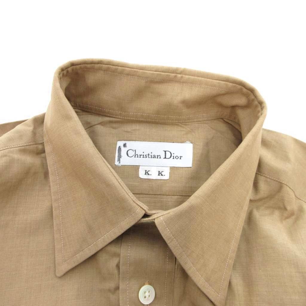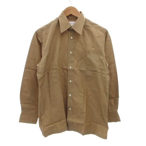 クリスチャンディオール Christian Dior ヴィンテージ シャツ 長袖 無地 レギュラーカラー 茶 ブラウン /JS ■GY22 メンズ
