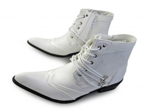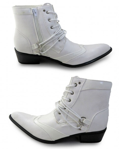 1円~L0133新品BOREDOMサイドジップアップ/変則編上げブーツ25.5㌢白♂