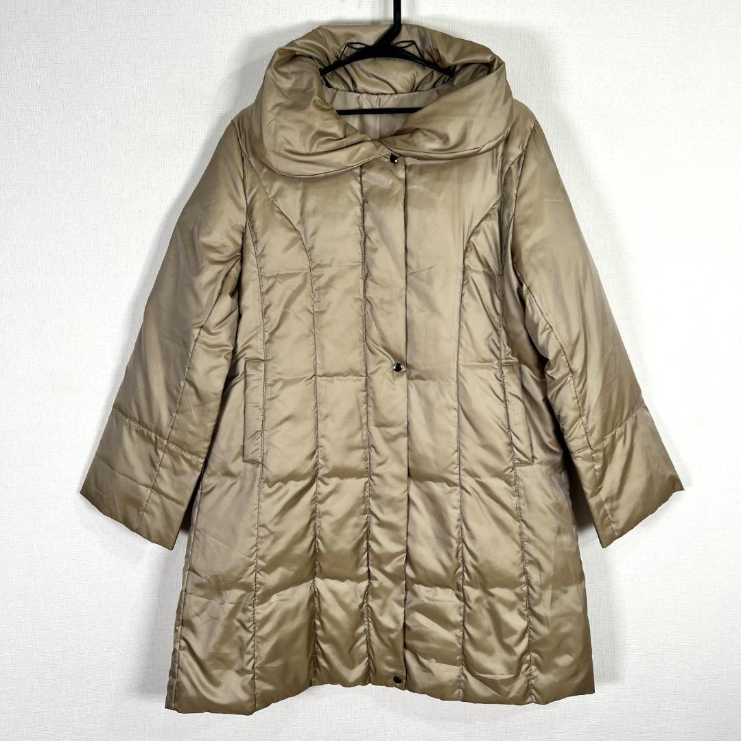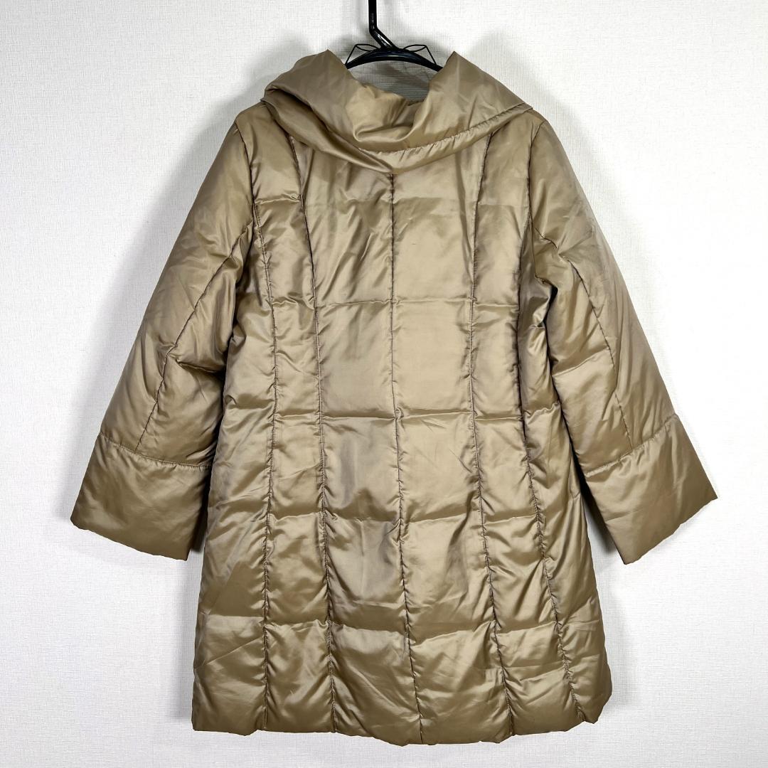 女性用のベージュ系の長袖ダウンジャケット コート ジャンパー ブルゾン アウターです。中古品ですが目立つような傷や汚れもなくまだまだ使っていただけます。古着 ミネルヴァ 株式会社フジコープ