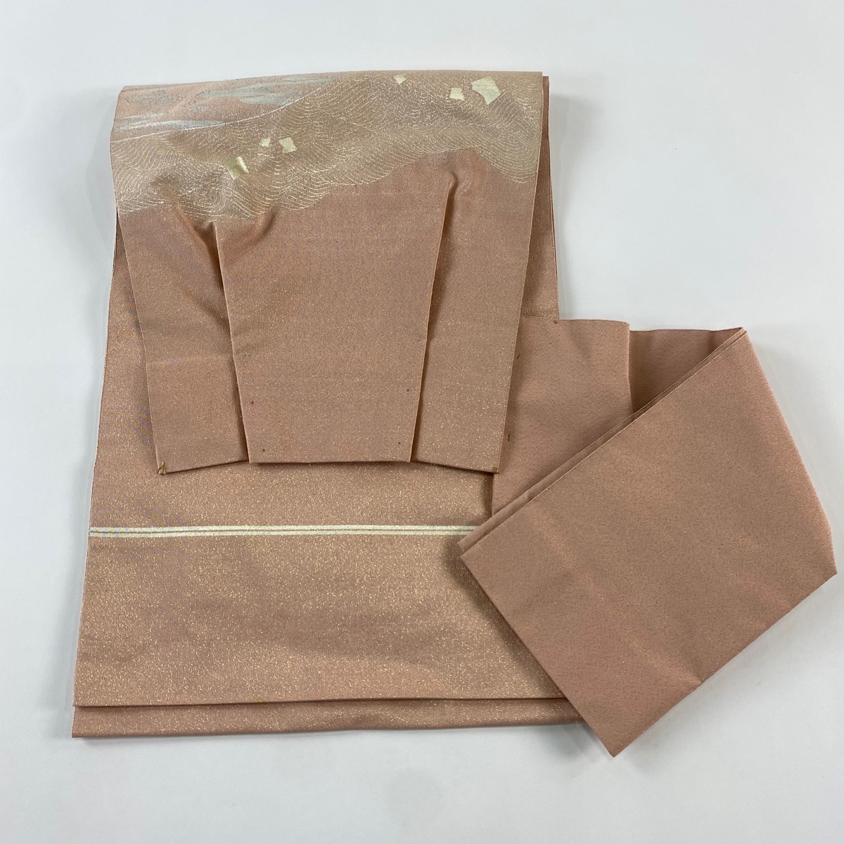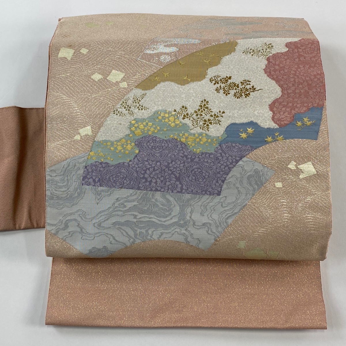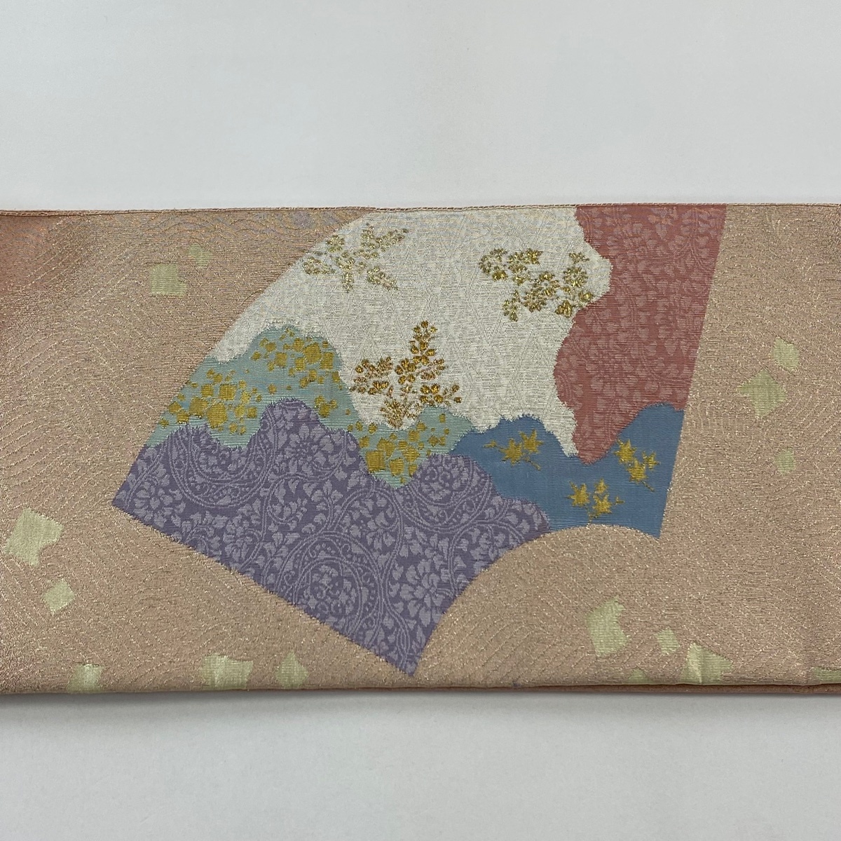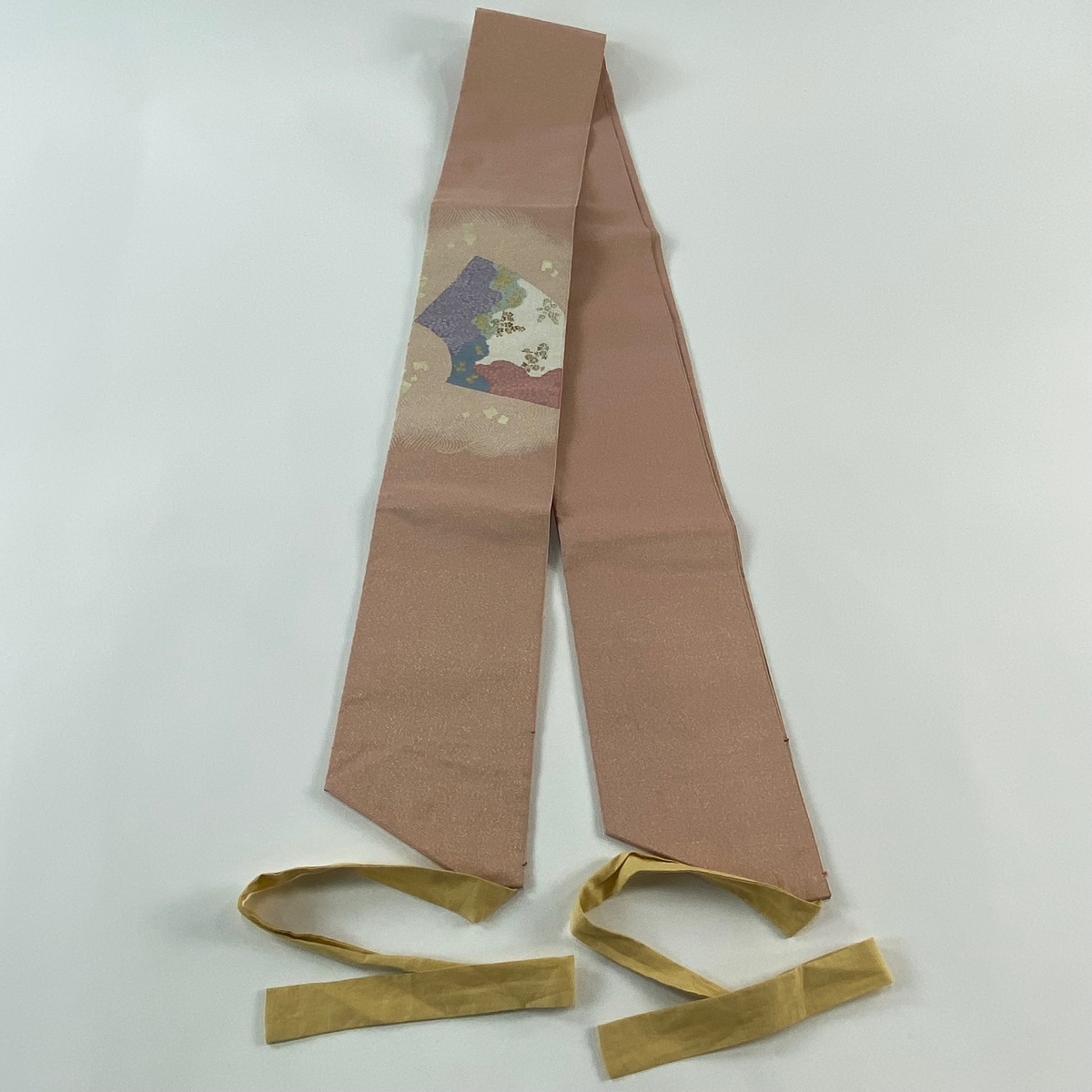 | 付け帯 美品 秀品 作り帯 綴れ 扇面 波 金糸 箔 ピンク 正絹 【中古】 |