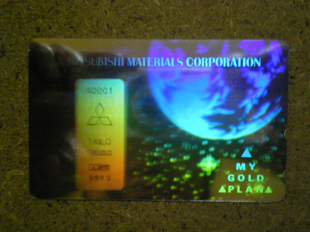 utyumi・宇宙 三菱マテリアル ゴールドバー ホログラム 50度数 未使用 テレカ
