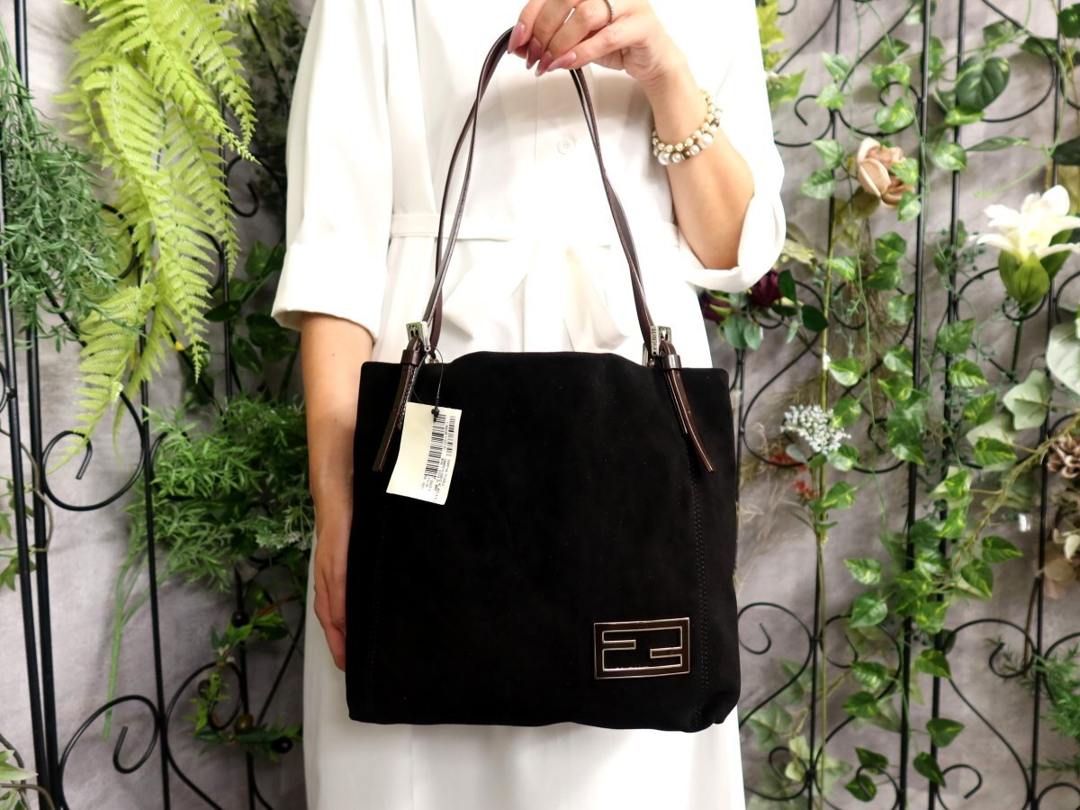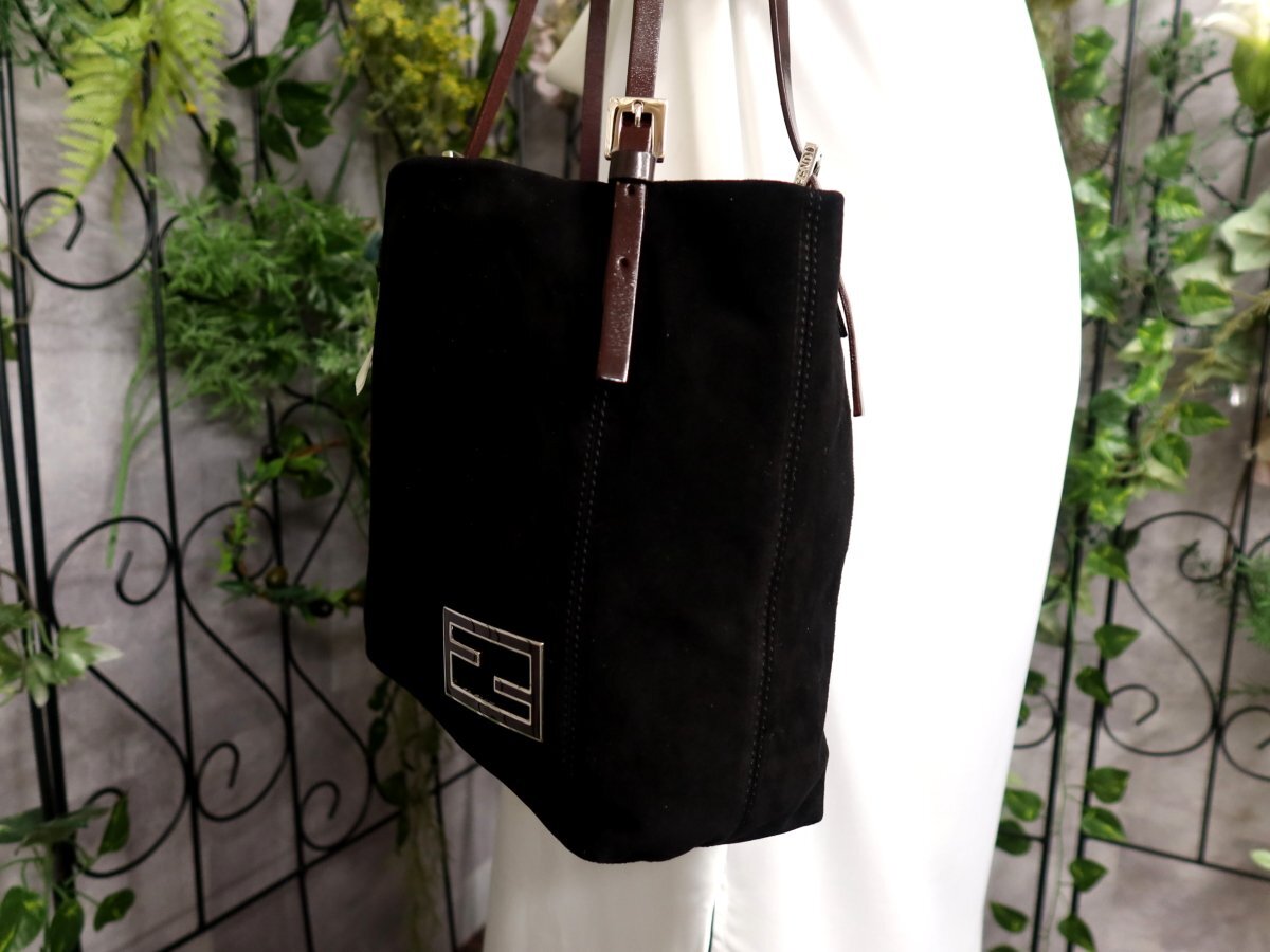 ●超美品●FENDI フェンディ●スエード カーフ レザー 本革●トート バッグ●黒●シルバー金具●腕掛け●B5 書類●収納 かばん●Js61011