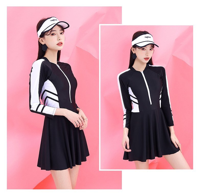 ・ウエスト回りのバイカラーがポイントになりボディラインがきれいに見えます◎