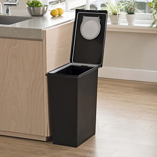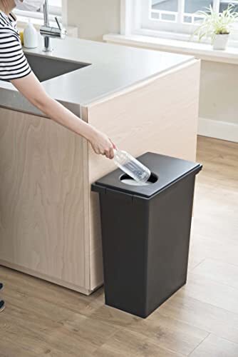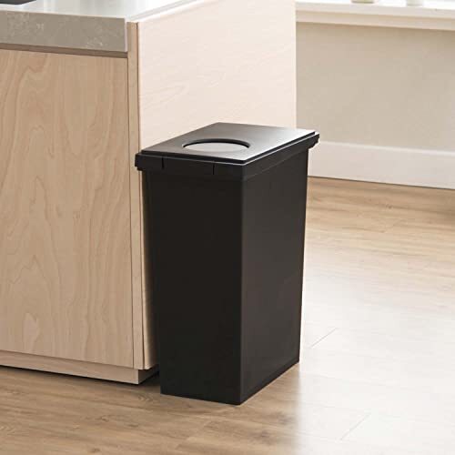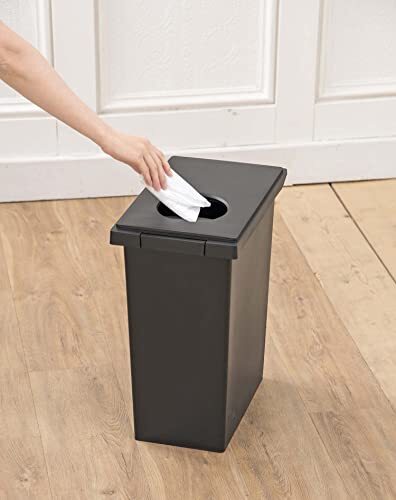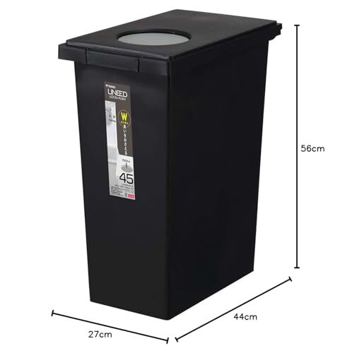 新輝合成 トンボ ユニード ゴミ箱45リットル 蓋を開けずにごみを捨てられる 防臭 密閉 ブラック 幅27×奥行44×高さ56cm 蓋付き 日本