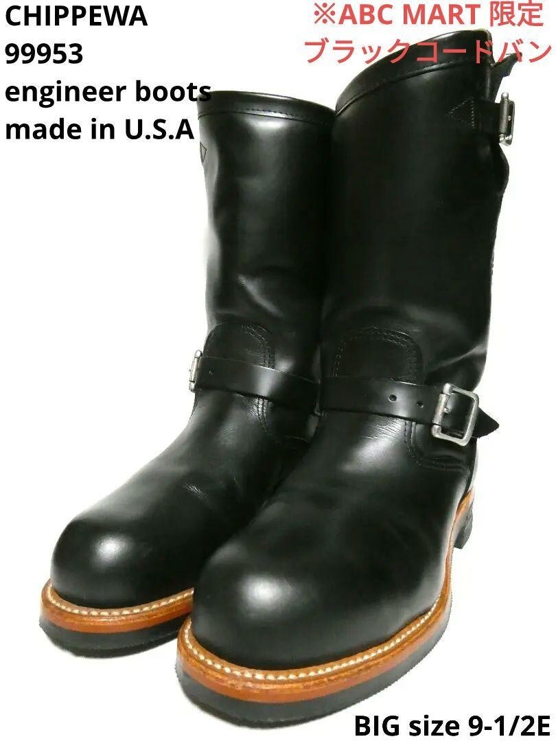 ヴィンテージ!美品!ビッグサイズ9-1/2E!ABCマート限定!激レア品番99953!ブラックコードバン!チペワエンジニアブーツCHIPPEWA