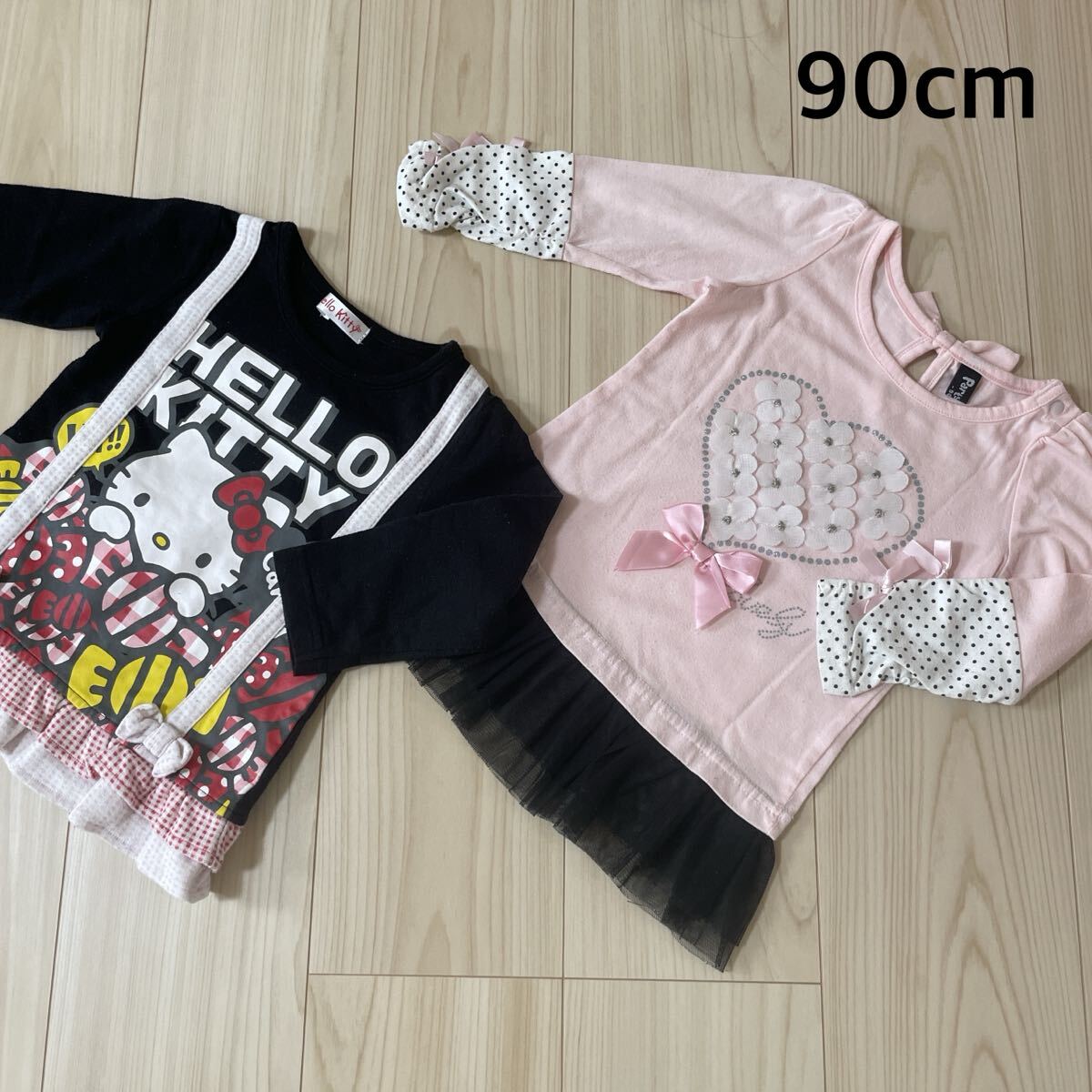 *キティちゃん柄とピンク色の長袖チュニックまとめ売り:90cm*