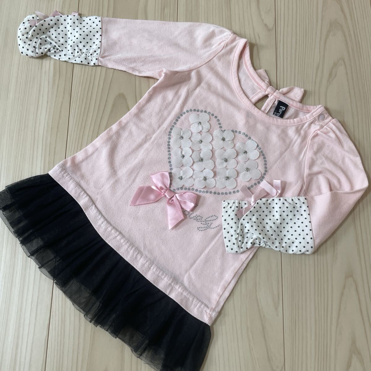 商品:裾がフリフリしていて可愛いキティちゃん柄とピンク色の長袖チュニックの2枚まとめ売りです。