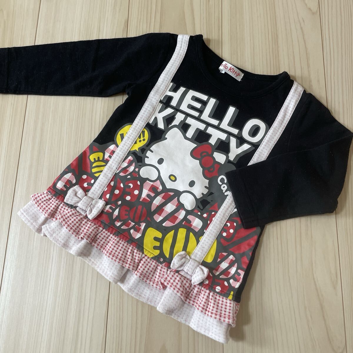 注意事項:着用感が少し&タグへの記名(キティちゃんの方)、4枚目の写真のようにプリントの剥がれが少しありますが、目立ったダメージはないと思います。中古という事を理解して頂ける方がいましたら入札をお願いします!!