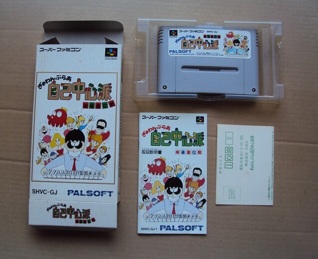 良品★・SFC 「 ぎゅわんぶらあ 自己中心派 麻雀皇位戦 」 ★箱・取説・ハガキ付 動作確認済 端子清掃済