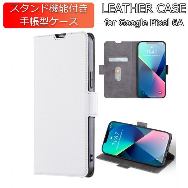 | 商品名 | Google Pixel 6A用 スマホケース 新品 手帳型 レザー 耐衝撃 カード収納 携帯ケース TPU 無地 ピクセル シンプル ホワイト |