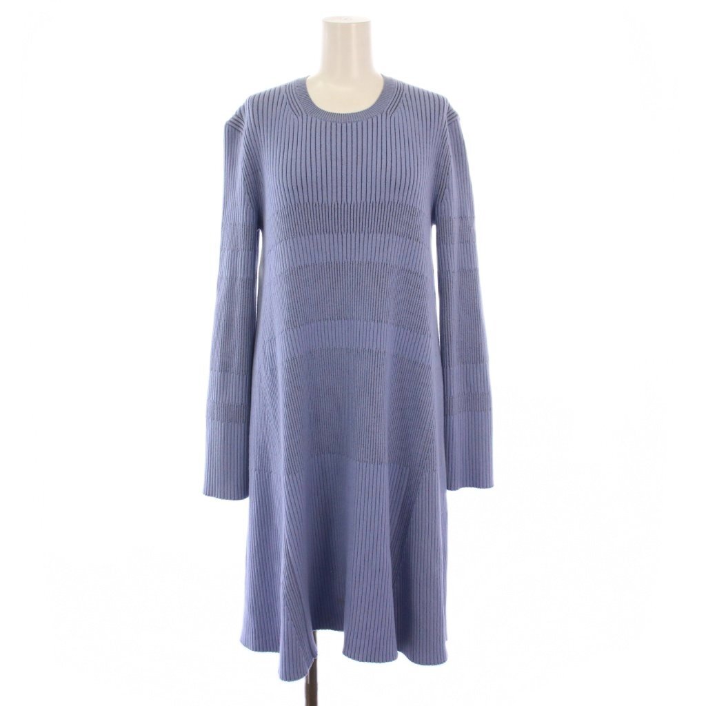 ドゥロワー Drawer リブニット ワンピース ひざ丈 長袖 クルーネック ウール 1 水色 6526-299-0860 /BM ■BM レディース