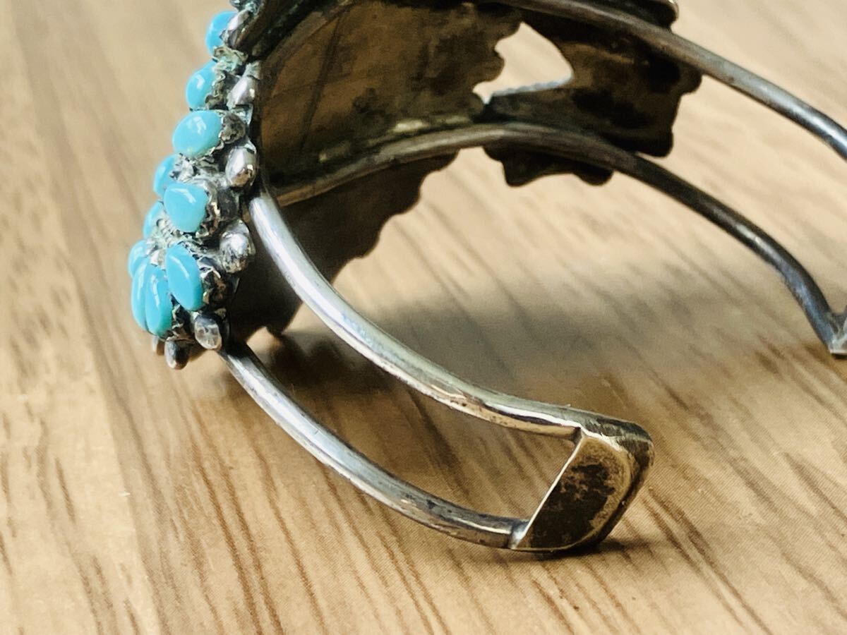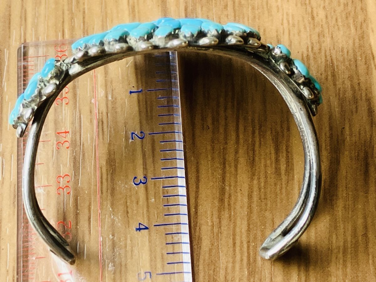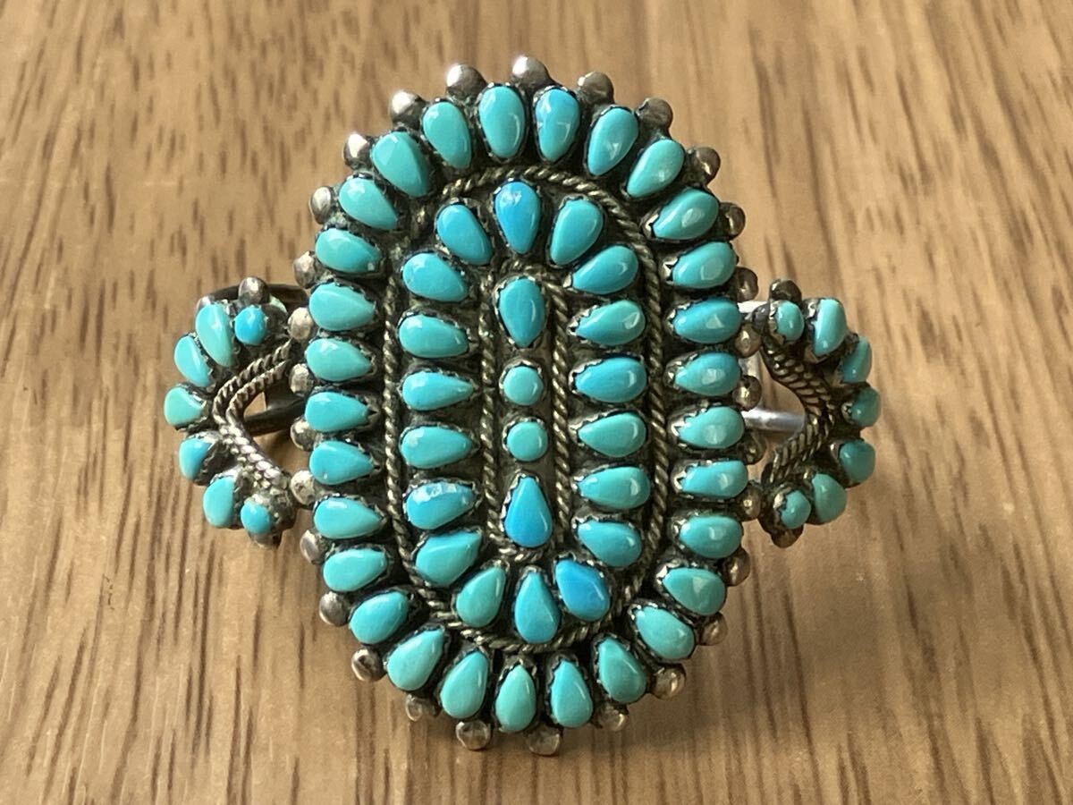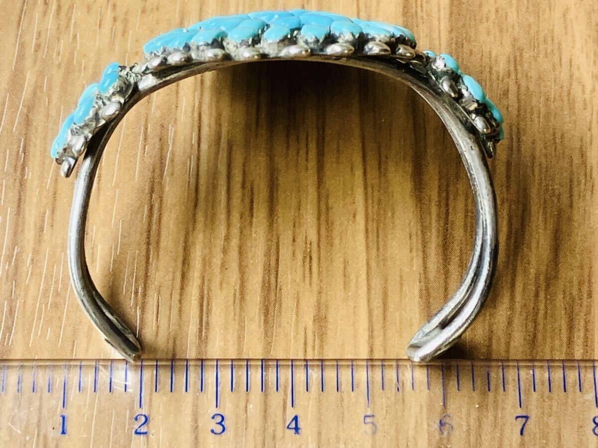 ネイティブアメリカン、ナバホ族の銀細工職人制作のターコイズクラスターバングルです。