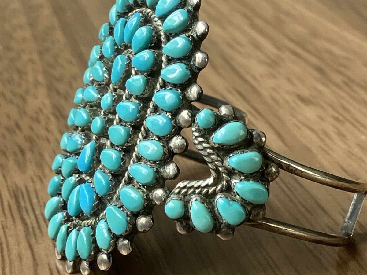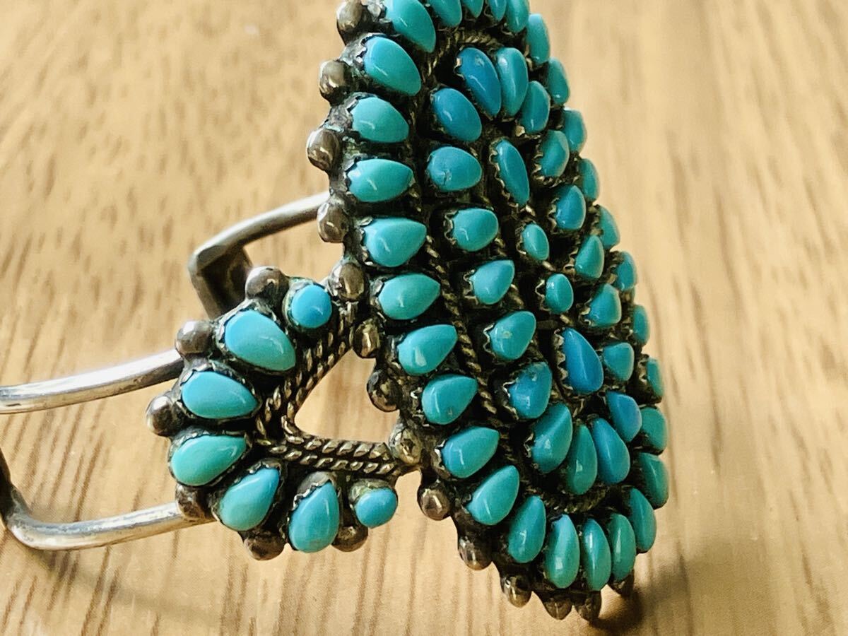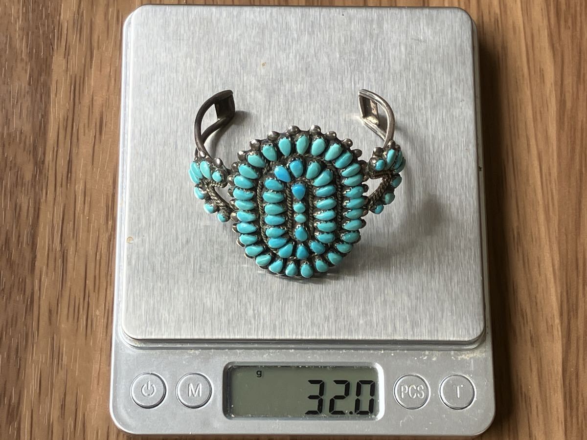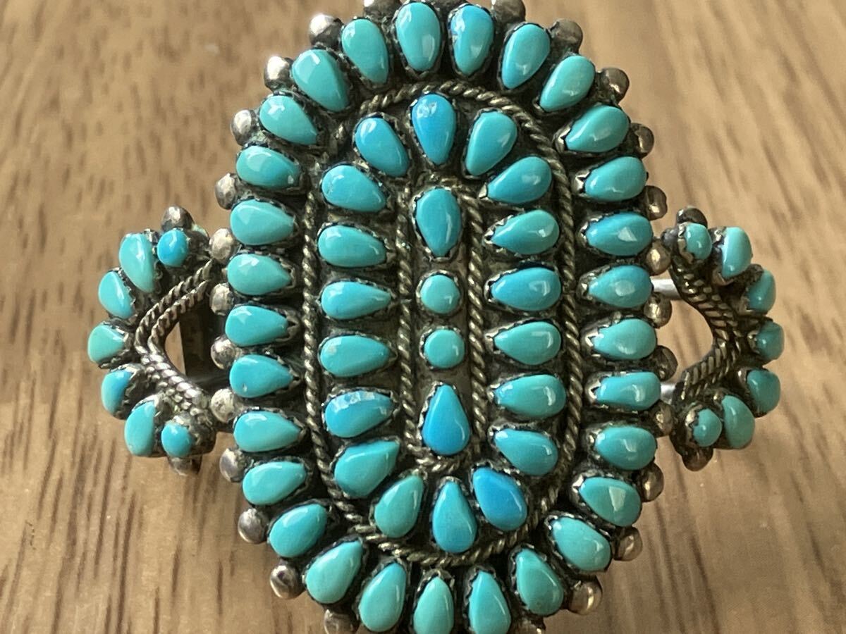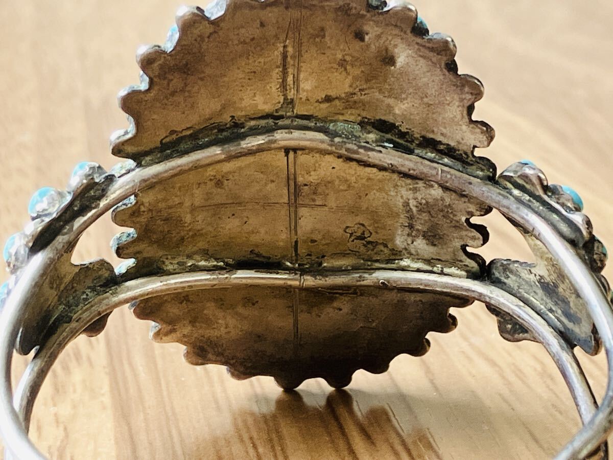 ネイティブアメリカン、ナバホ族の銀細工職人制作のターコイズクラスターバングルです。
