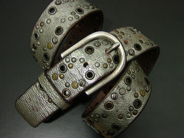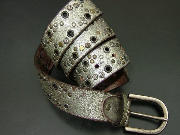 新品 イタリア製 高級スタッズ箔レザーベルト made in Italy 619