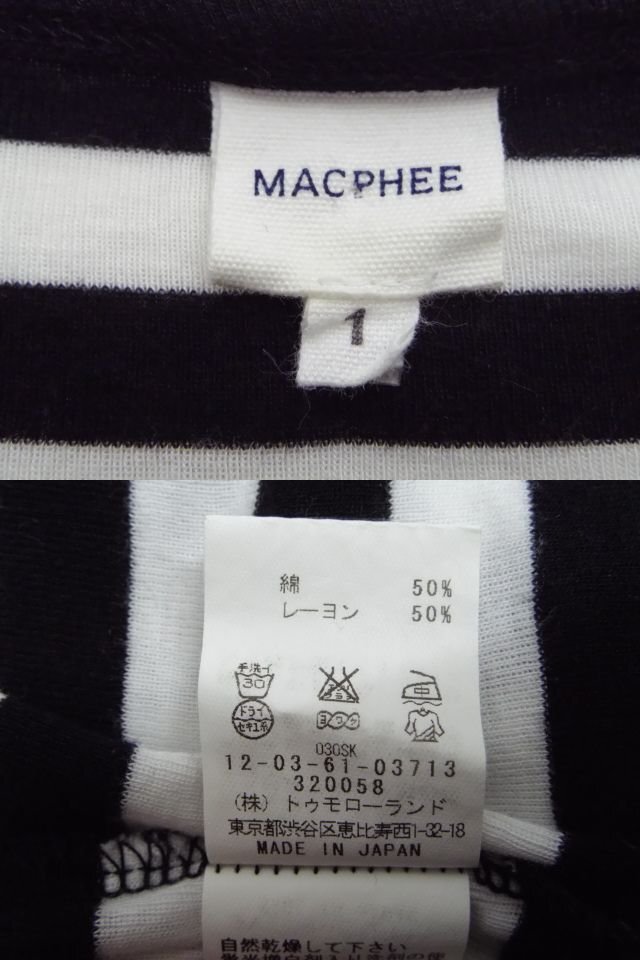 美品★MACPHEE◎マカフィー/長袖カットソー/長袖Tシャツ/ボーダー柄/ホワイト/ブラック/日本製/1サイズ