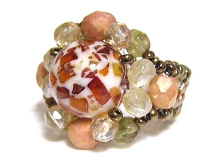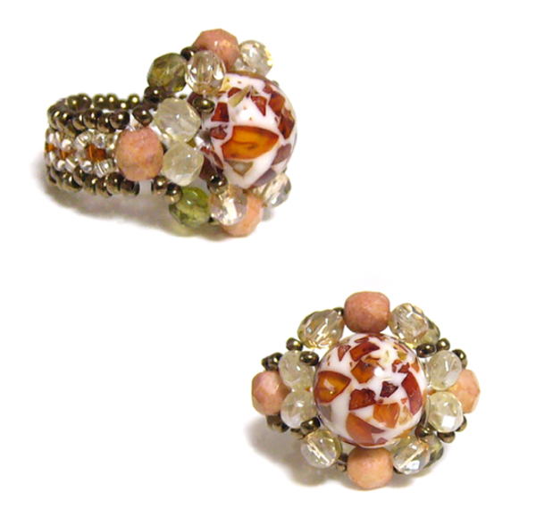 ☆COCO☆大粒ミックスアンバー&チェコビーズのリング☆