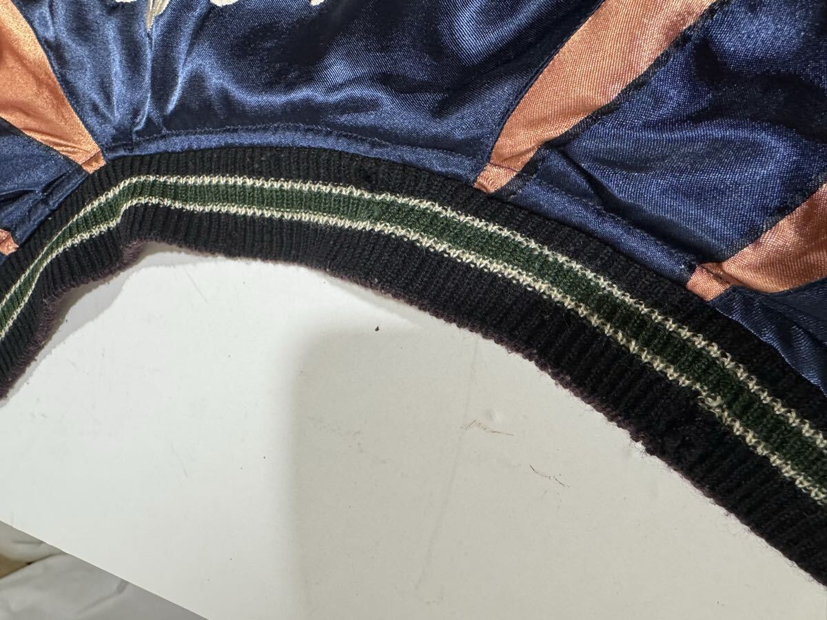 10数年前に購入しました。あまり着用していなく、自宅保管していました。その際襟の部分に数ヶ所虫食いぎあります。大きなダメージはありませんが、古いものですので経年劣化があります。中古品ですのでノーリターン・ノークレームでお願いします。