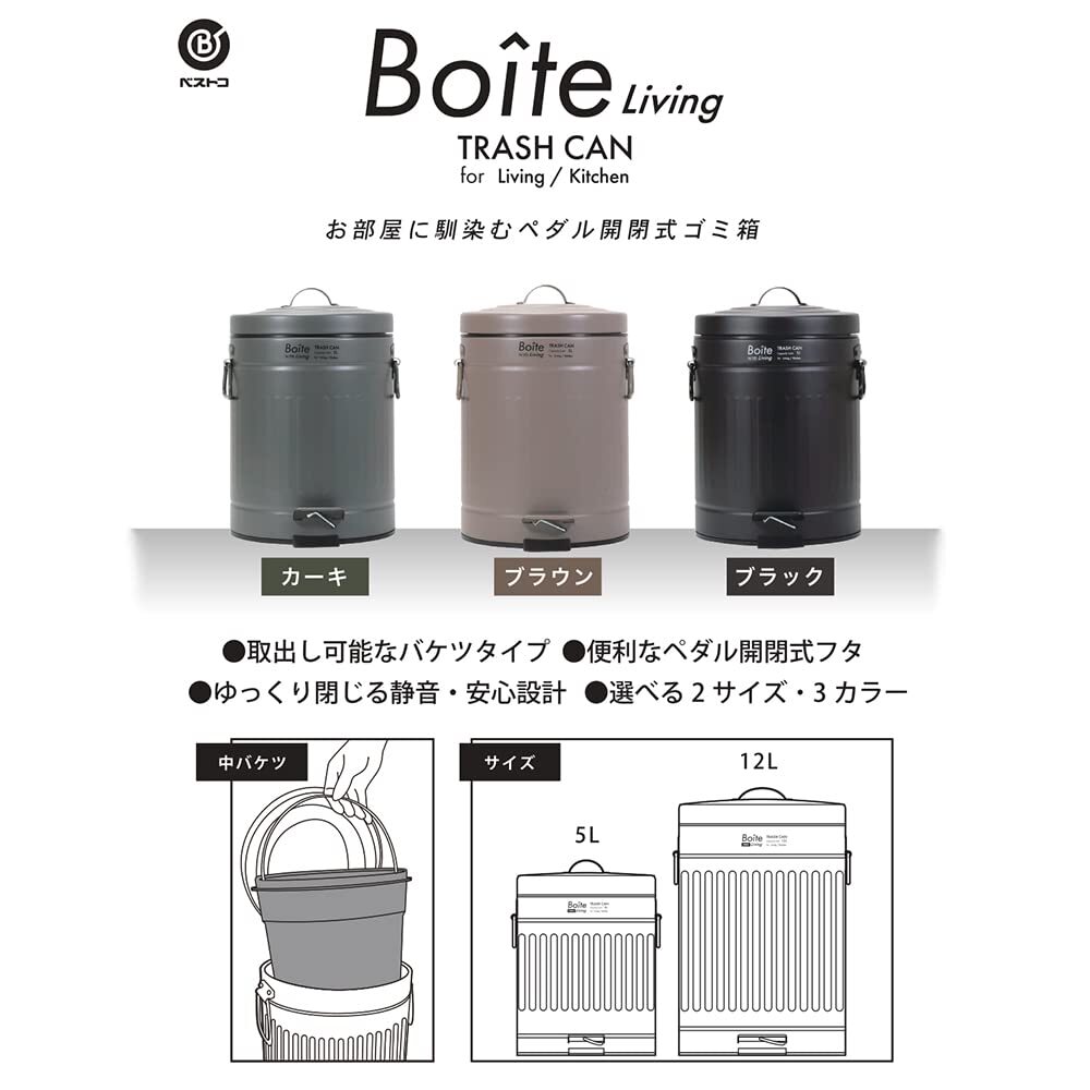 ベストコ ゴミ箱 ふた付き 5L ペダル式 静音設計 丸型 ブラウン NQ-0191 Boite トラッシュカン