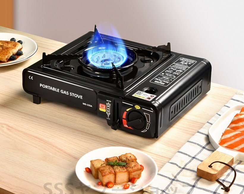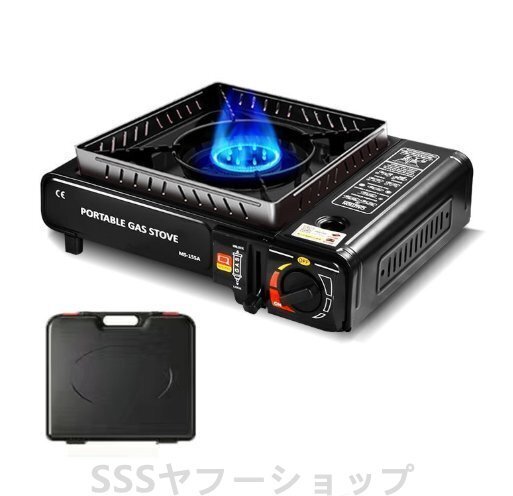 カセットコンロ ストーブ ケース付き 高火力 防災対策 圧力感知装置 卓上コンロ ガス キャンプ アウトドア BBQコンロ 停電対策 ブラック