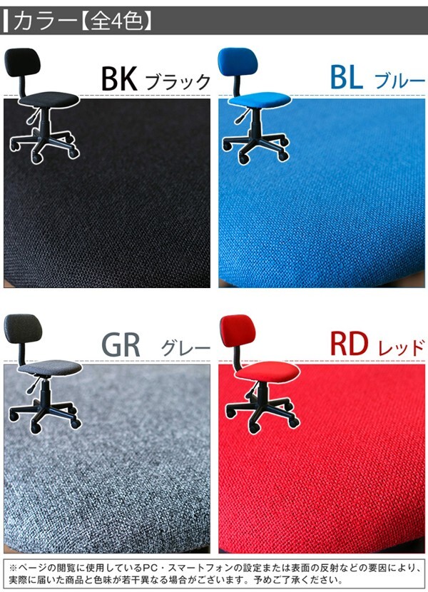 現在ご覧の商品ページはブルーのご購入ページとなります。 ヤフオクの仕様上単一ページに複数バリエーションを掲載することができませんので、他バリエーションが希望の場合は別ページでご購入お願い致します。 配達業者を指定いただくことはできません。 沖縄県・離島配送不可となります。 オフィスチェアです レバーで座面昇降可能です お求めやすいロープライスなチェアです ブラック(BK)、ブルー(BL)、グレー(GR)、レッド(RD)の4色展開です ※デスクは別売りです タイミングによっては在庫切れの場合があります。