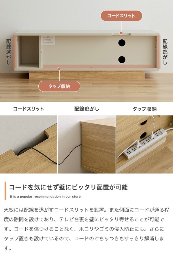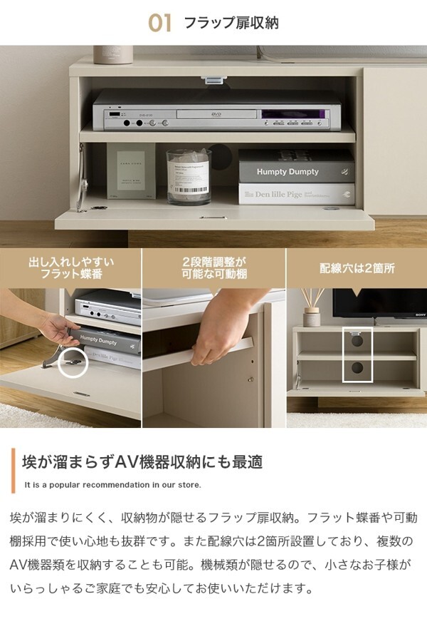 ※現在ご覧の商品ページはグレージュのご購入ページとなります。 ヤフオクの仕様上単一ページに複数バリエーションを掲載することができませんので、他バリエーションが希望の場合は別ページでご購入お願い致します。 バイカラーの配色が特徴的な『Pom』引き出し付きテレビ台。 ノイズレスでフロート脚のデザインは、置くだけでアクセントとなり、洗練された空間へと導きます。 また引き出し収納や扉収納、吹き抜け収納を設置し、大容量収納ができるのでテレビ周りもすっきり。 さらに壁付けで配置できるのに配線もすっきり通すことのできる設計に仕上げました。 シンプルなのにこだわりの詰まったデザインと実用性を兼ねそろえたテレビ台です。 配達業者を指定いただくことはできません。 沖縄・離島に関しましては、別途配送料が必要となります。 北海道への配送も別途配送料が必要になる場合がございます。 ※別途送料が発生する場合は後ほどご連絡させていただきます。 タイミングによっては在庫切れの場合があります。