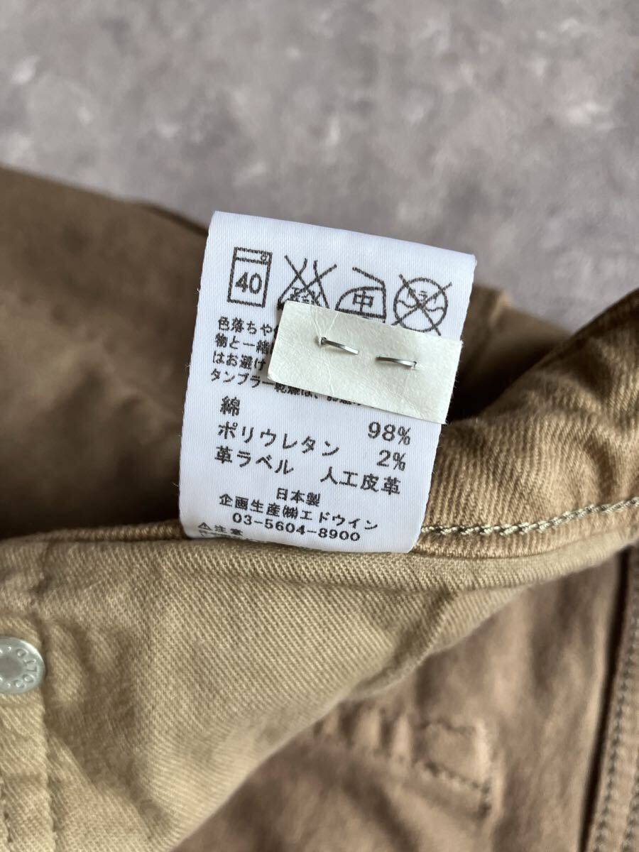 ワタリ・モモ回りに多少ゆとりを持ち、ヒザからスソにかけてテーパードしています。