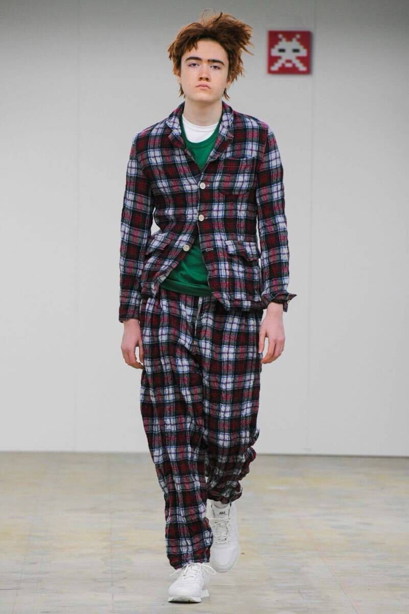 comme des garcons homme shirt タータンチェック ウール縮絨 テーパードパンツ