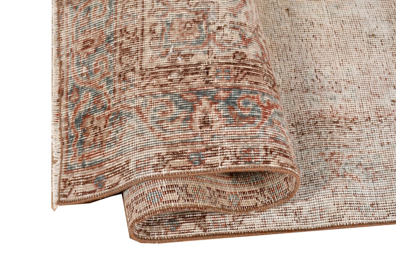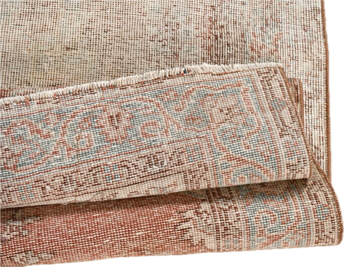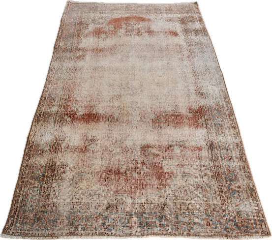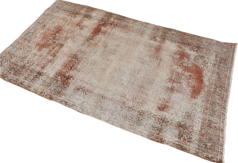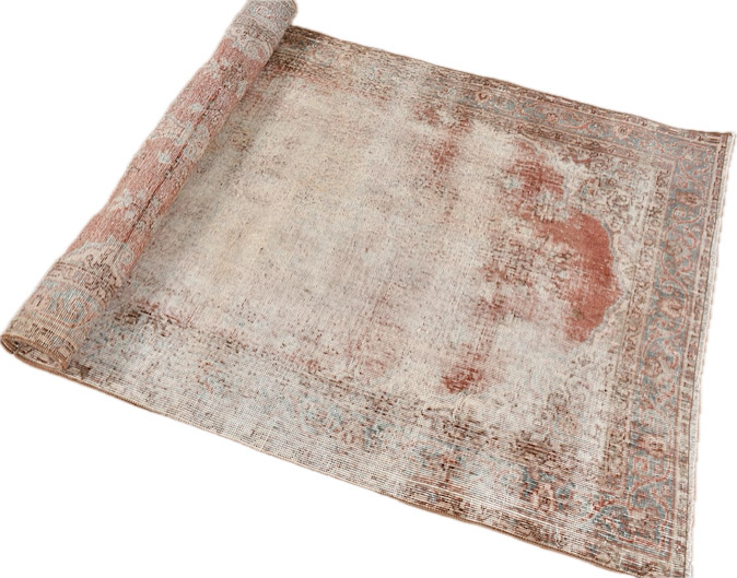 〇トルコのヴィンテージラグはシャビ―な雰囲気が修繕の跡や色落ちから得られることが特徴です。一品づつ色落ち具合も異なり、新品の状態とは異なりますので、ご留意ください。 糸を足すことによる修繕、強化の跡やほつれや糸が出ている箇所が見られることがありますが、元々頑丈な手織りですのでご使用に際しての支障が出るものではございません。