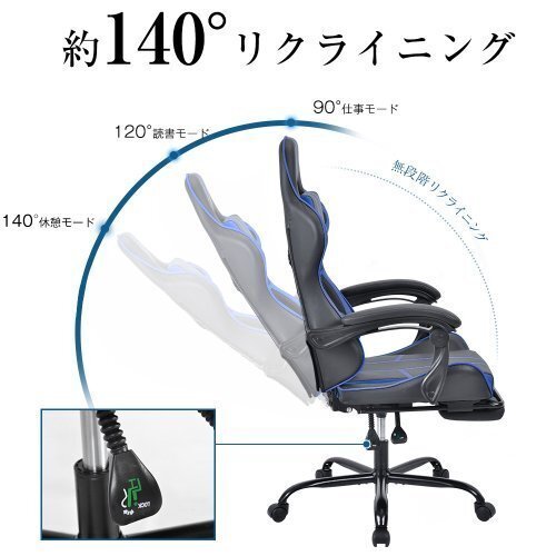 7.【いつでも簡単に調節できるリクライニング機能】 140°リクライニング可能、椅子に座ったままでくつろぐことができます。レバー一つで簡単に背もたれを調節でき、作業とゲームプレイの姿勢の変化や体格差に応じた最適なサポートを実現します。オフィスでの休憩や仮眠にも最適です。8.【360度回転座面】立ち上がらなくても手が届く。