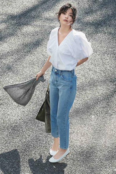 デニム好きも満足な加工感を施しながら、鮮やかなカラーで清潔感を残しているのがポイント。