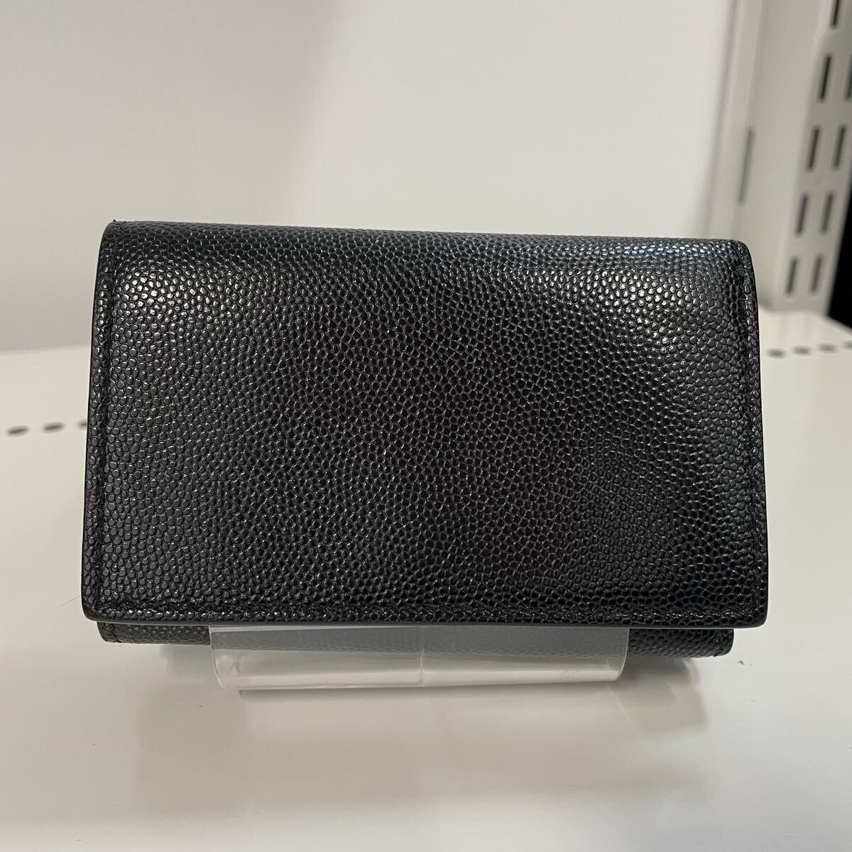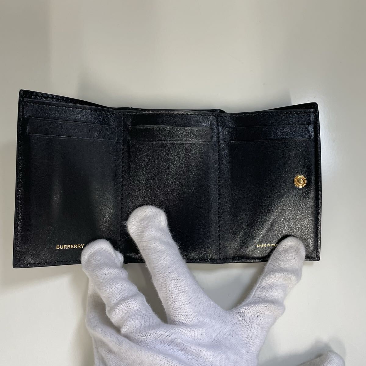 【BURBERRY】バーバリー TBロゴ キャビアスキン 三つ折り財布 レザー ブラック 34