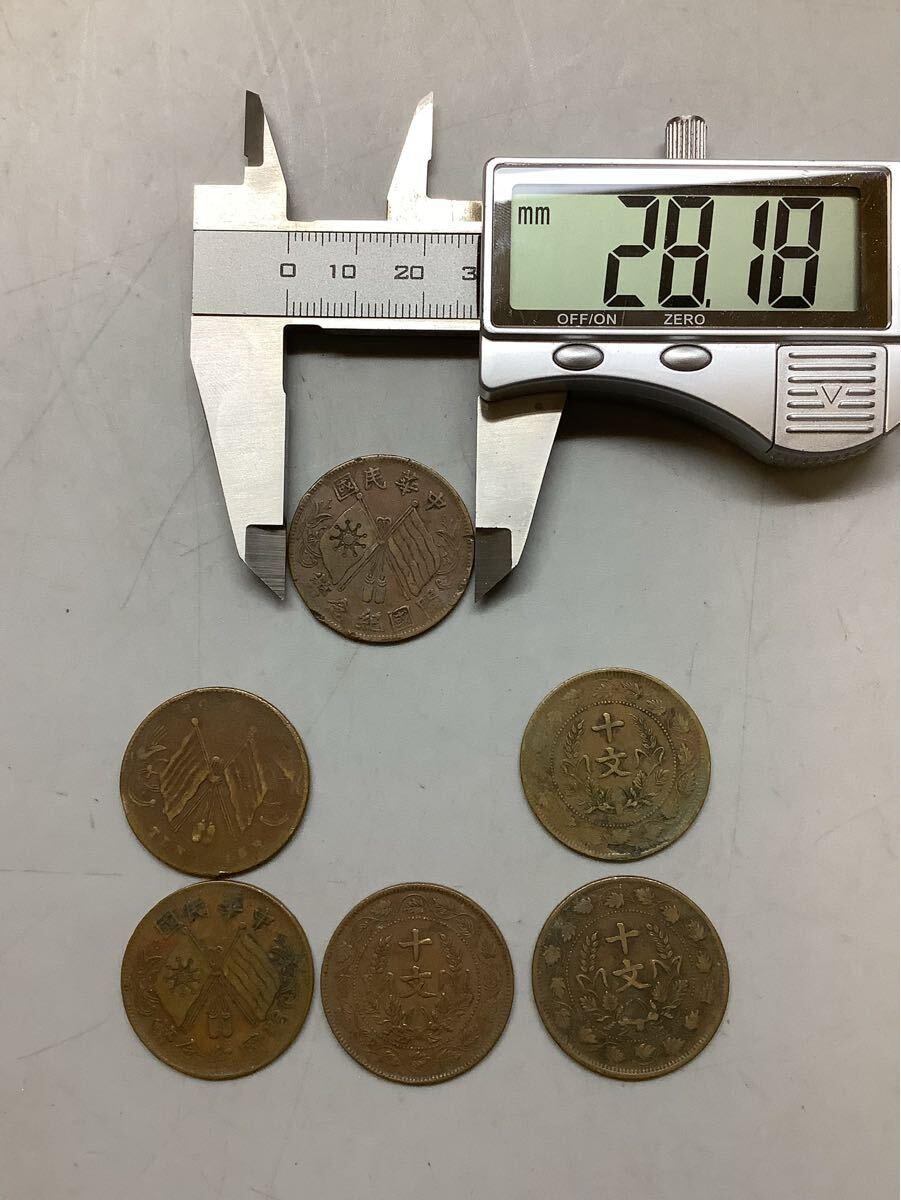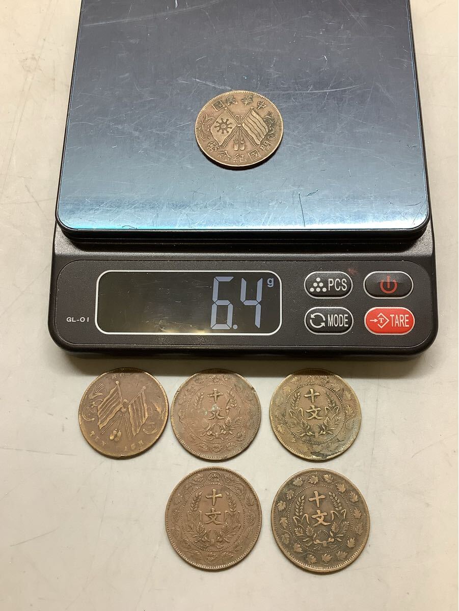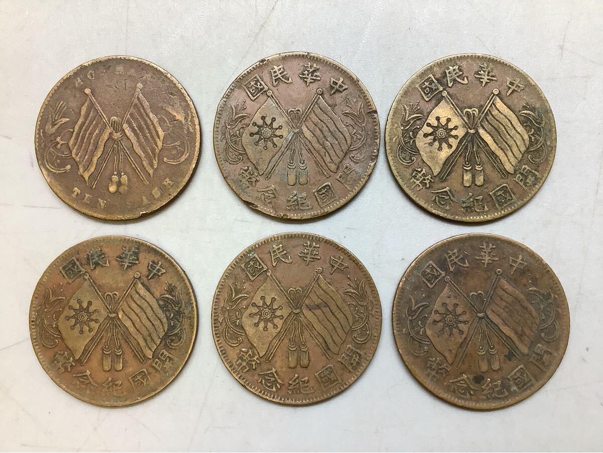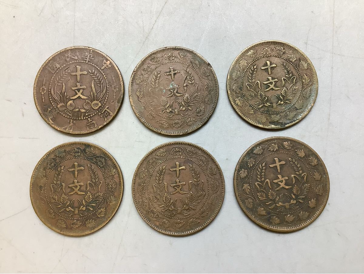 N9 まとめ6枚 中国 コイン 銅貨 古銭 貨幣 中華民国 開國紀念幣 河南省造 十文 CHINA 銅貨 総重量40.2g