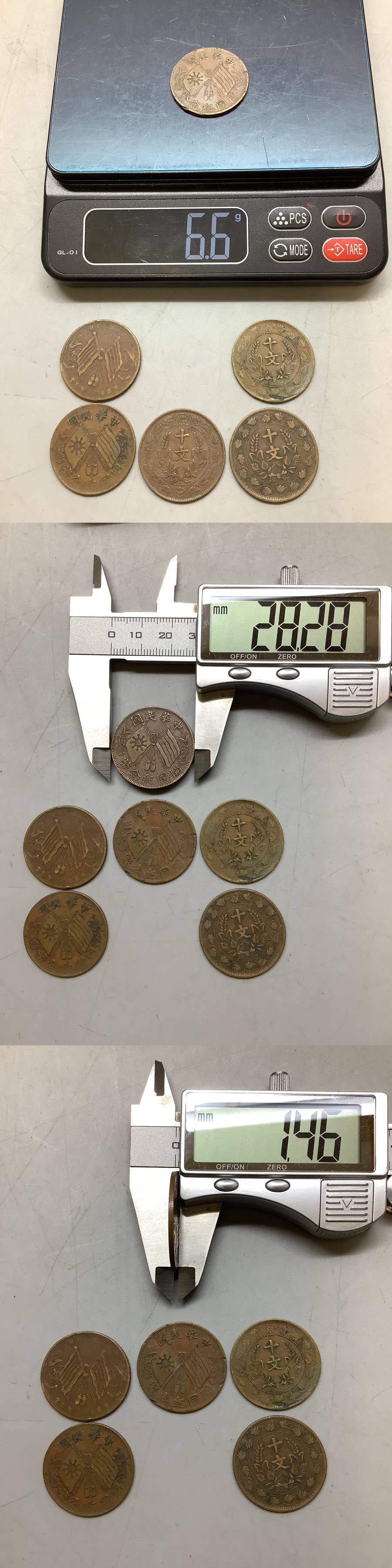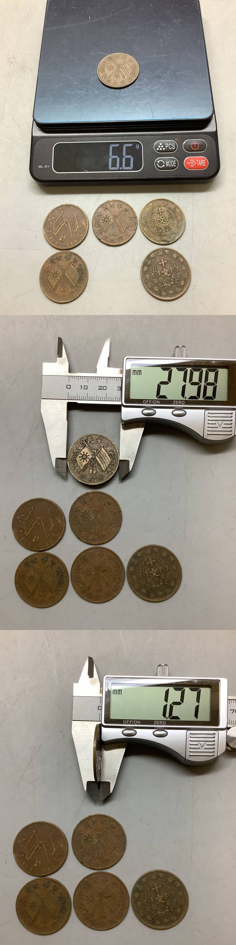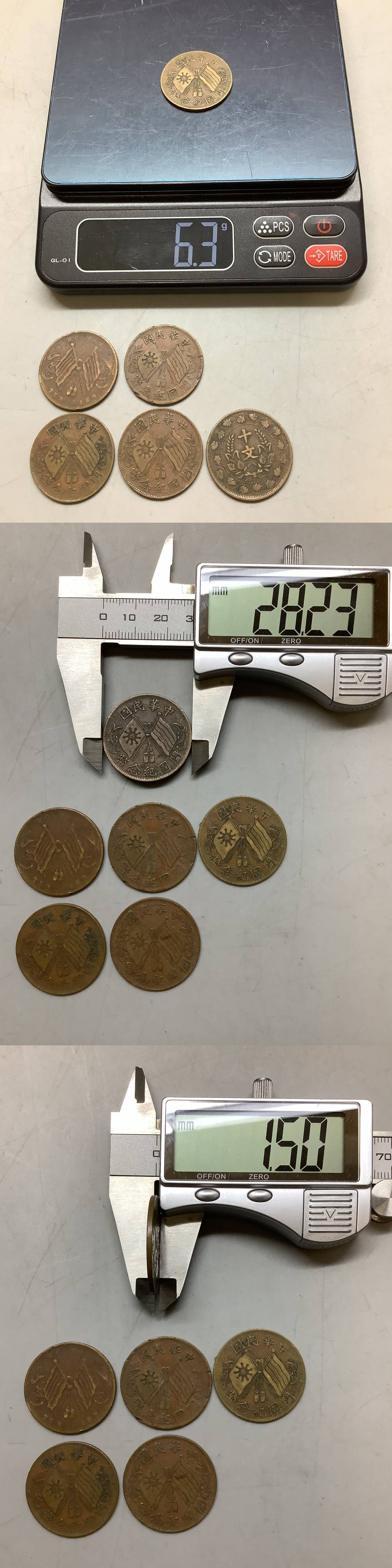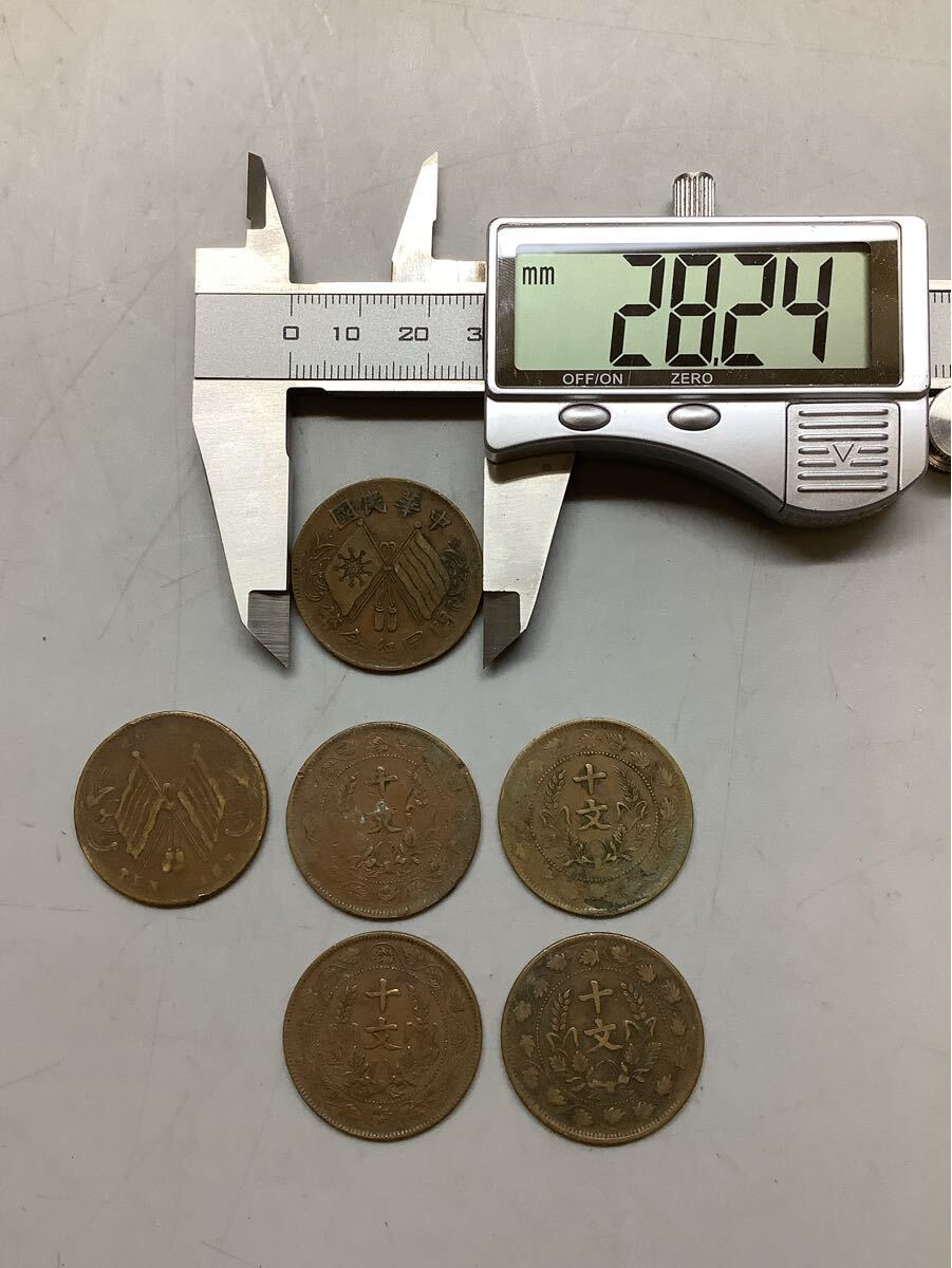 N9 まとめ6枚 中国 コイン 銅貨 古銭 貨幣 中華民国 開國紀念幣 河南省造 十文 CHINA 銅貨 総重量40.2g