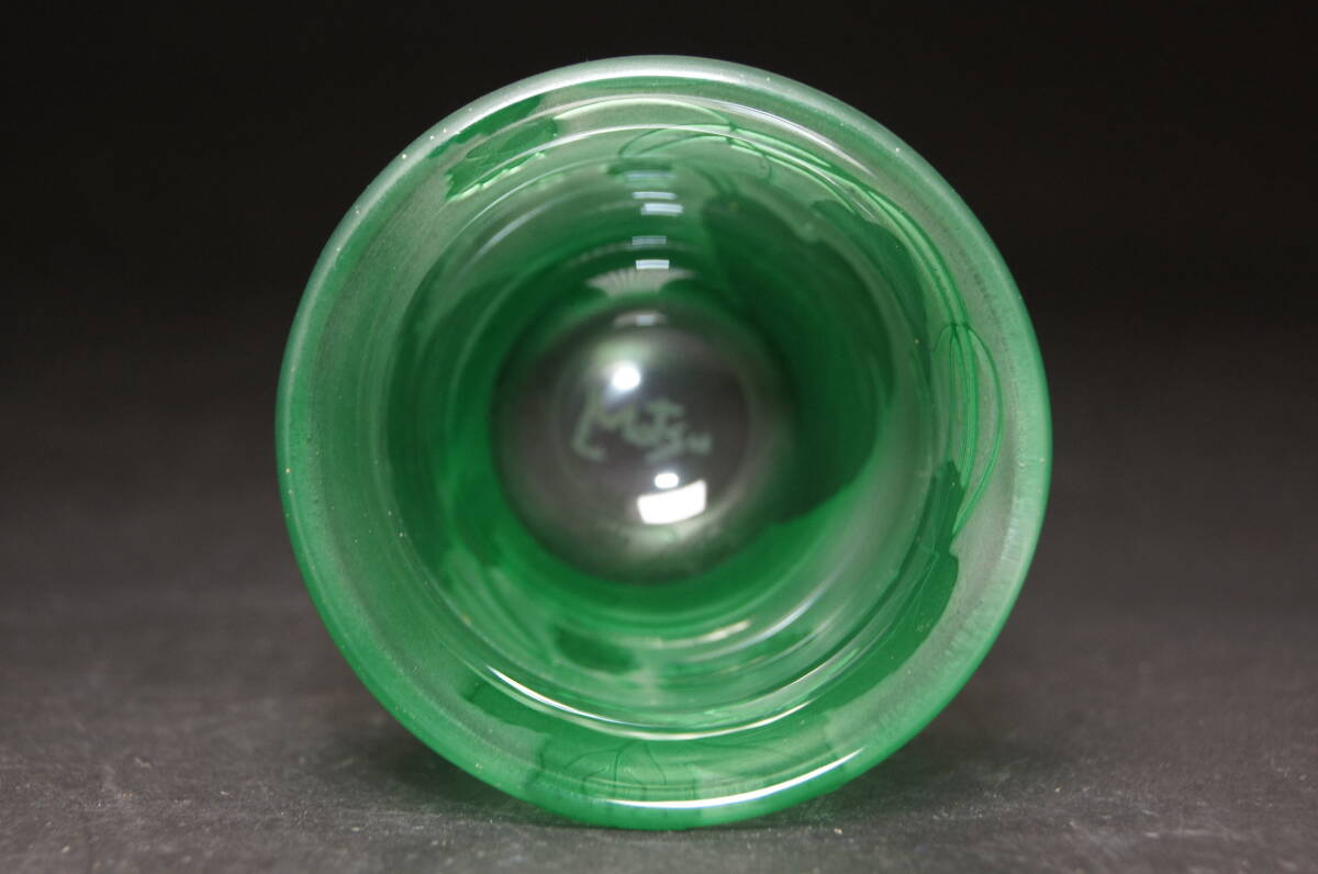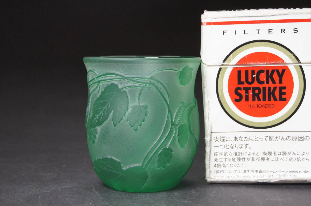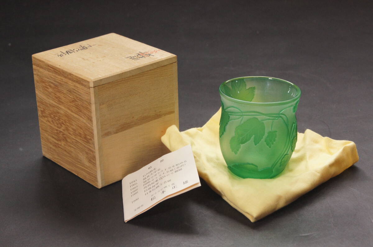 真贋保証■松本正雄 作■ 砂彫硝子 ぐい呑 共箱・布・栞付 ガラスに咲く花 蔦文 サンドブラスト 酒器 酒杯 酒盃 ガラス工芸 石川県生 | |||||||||||