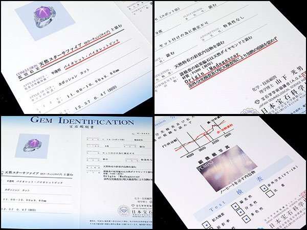 日本宝石科学協会発行の宝石鑑別書付属(産地記載有り)